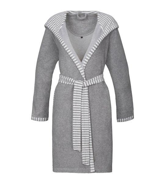 Le peignoir Juno offre confort et style, parfait pour se détendre à la maison. Il présente une texture douce et un design classique avec une capuche pour plus de chaleur et de confort. Les détails rayés sur la capuche, les poignets et la ceinture à nouer ajoutent une touche d'élégance moderne à cet article de loungewear essentiel.