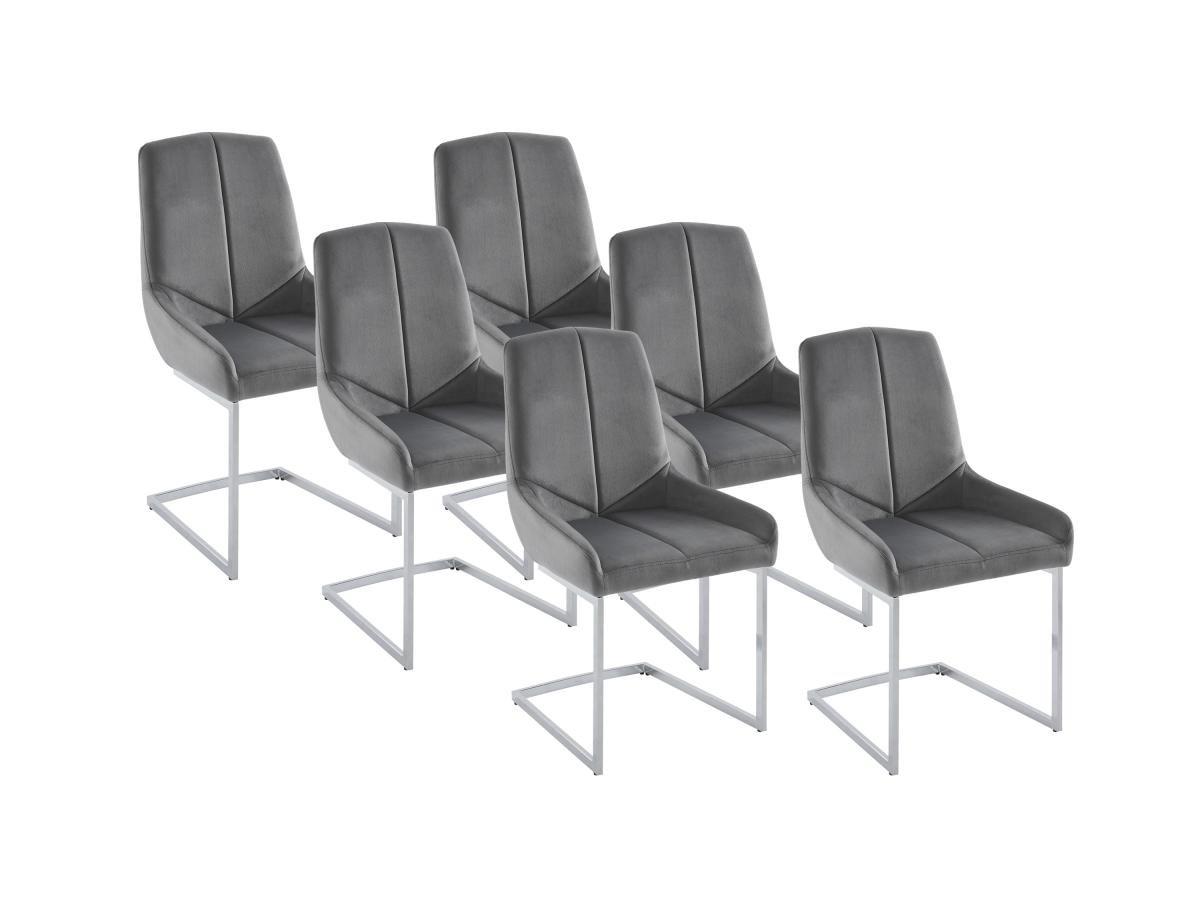 Vente-unique, Lot de 6 chaises en velours et métal - Gris - BERLONA