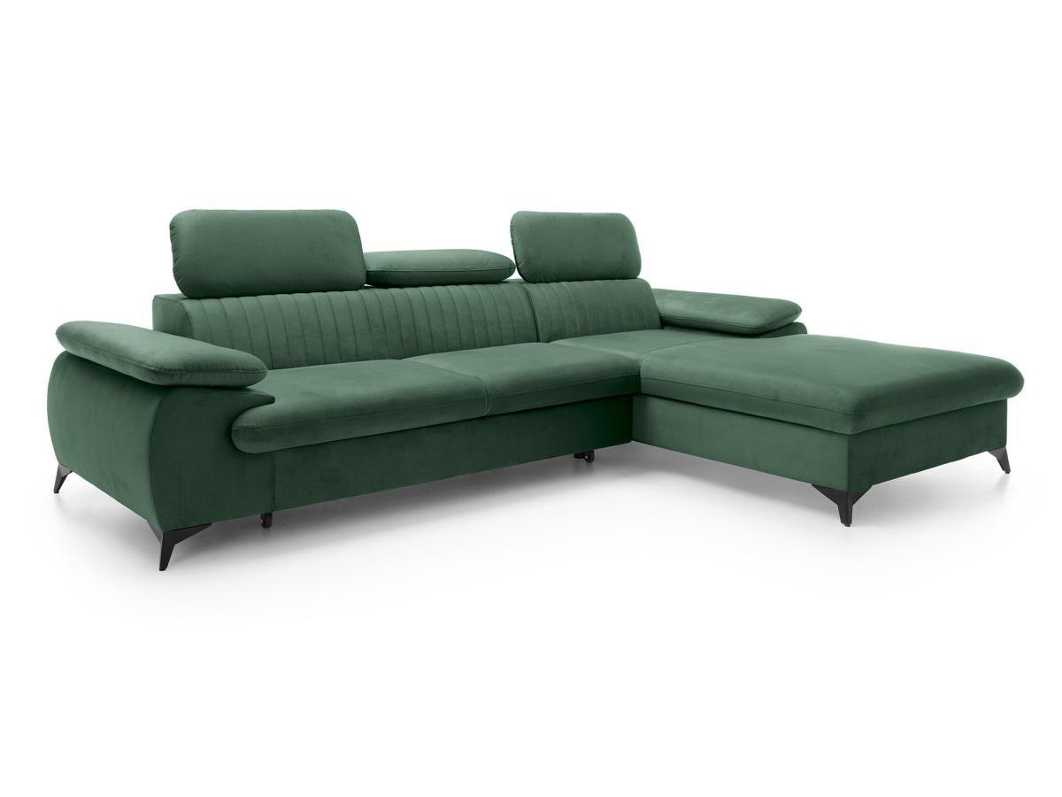 PASCAL MORABITO Canapé d'angle droit convertible en velours vert SAMARA de Pascal Morabito