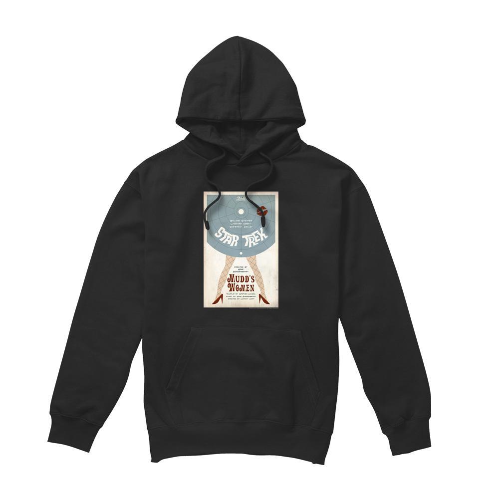 Ce sweat à capuche présente un imprimé graphique inspiré de « Mudd's Women », le sixième épisode de Star Trek : The Original Series. Le design met en valeur une publicité de style vintage pour l'épisode, ce qui en fait une pièce distinctive pour les fans.