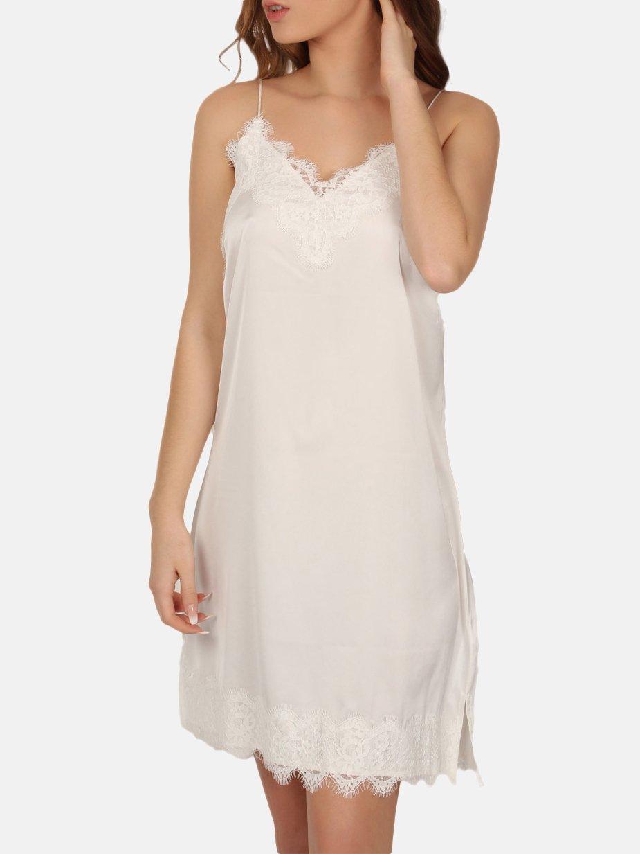 Cette nuisette présente un design délicat avec une bordure en dentelle le long de l'encolure en V et de l'ourlet. Le tissu en crêpe doux procure une sensation lisse et confortable, en faisant un choix élégant pour les vêtements d'intérieur.