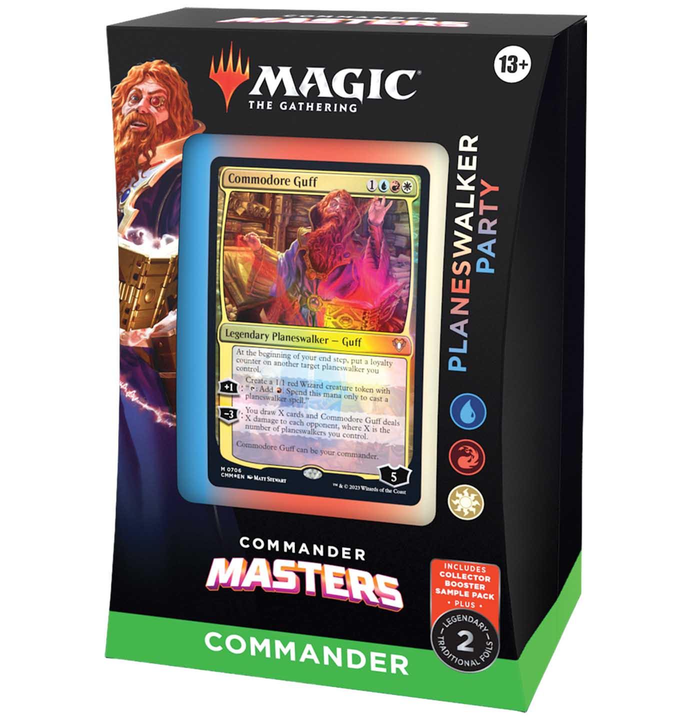 Jedes Commander-Masters-Commander-Deck-Set enthält 1 spielfertiges Deck mit 100 Magic-Karten (2 traditionelle Premium-Legendäre-Kreatur-Karten, 98 Nicht-Foil-Karten), ein 2-Karten-Collector-Booster-Probepaket, 1 Display-Commander mit Folienätzung (ein dicker Karton). (Kopie der Kommandantenkarte mit in den Kartenrand und in die Grafik eingravierter Folie), 10 doppelseitige Spielsteine, 1 Deckbox (kann 100 Karten mit Hüllen aufnehmen), 1 Lebensrad, 1 Strategieeinlage und 1 Referenzkarte.