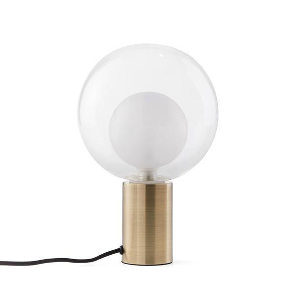 Un design original pour cette lampe sur socle métal finition laiton Arvin qui dispose d'un abat-jour type double globe en verre.