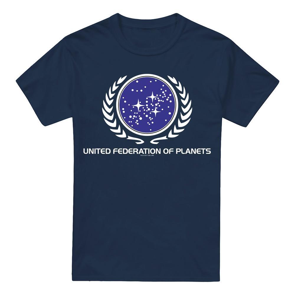 Ce T-shirt arbore un imprimé graphique du logo de la Fédération Unie des Planètes, en faisant une pièce distinctive pour les fans. Le design est mis en évidence sur le devant, offrant une déclaration claire.