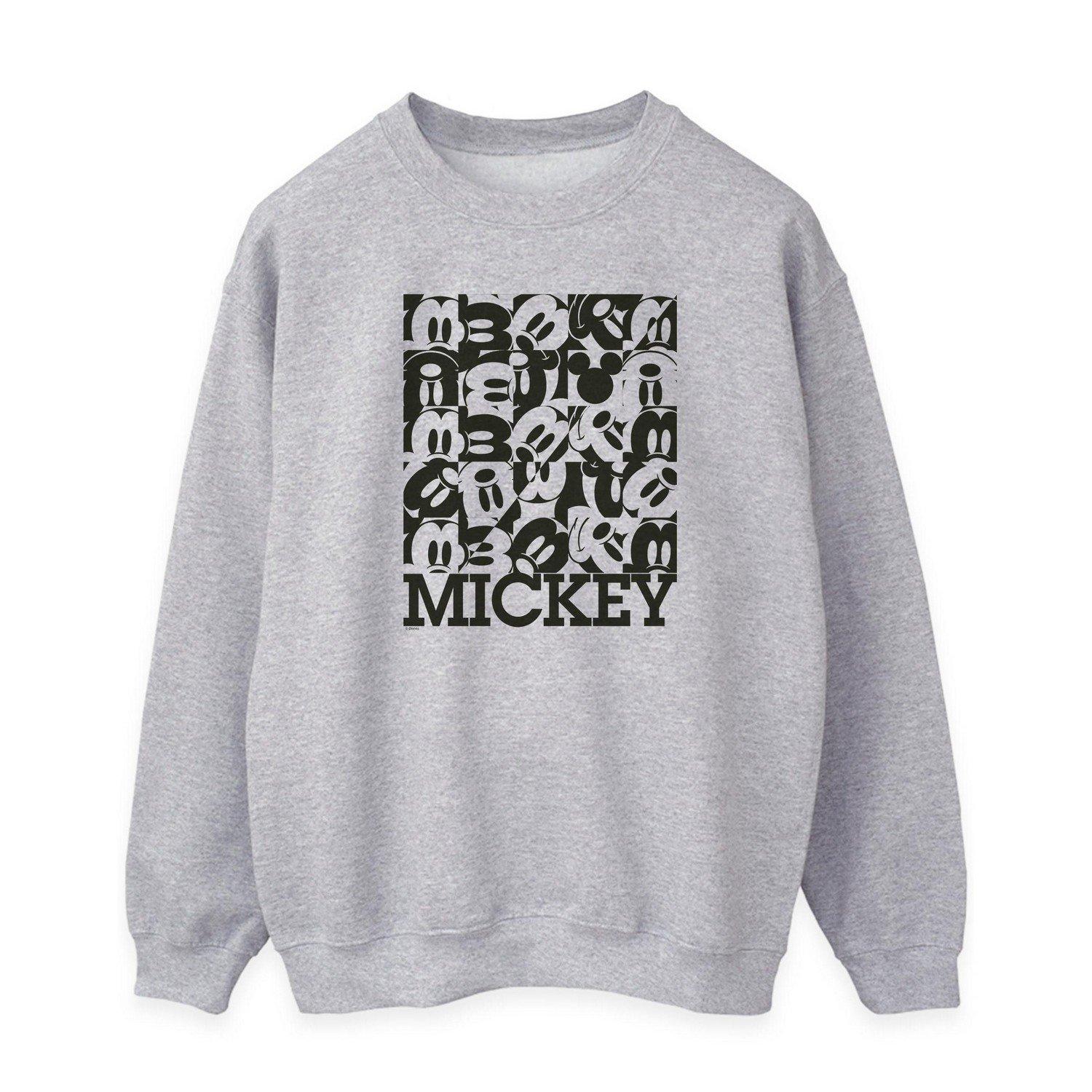 Ce sweatshirt présente un imprimé graphique ludique de Mickey Mouse, ce qui en fait un ajout amusant à toute garde-robe décontractée. Le design met en valeur plusieurs visages de Mickey Mouse disposés en damier, avec le logo « MICKEY » affiché en évidence en bas.