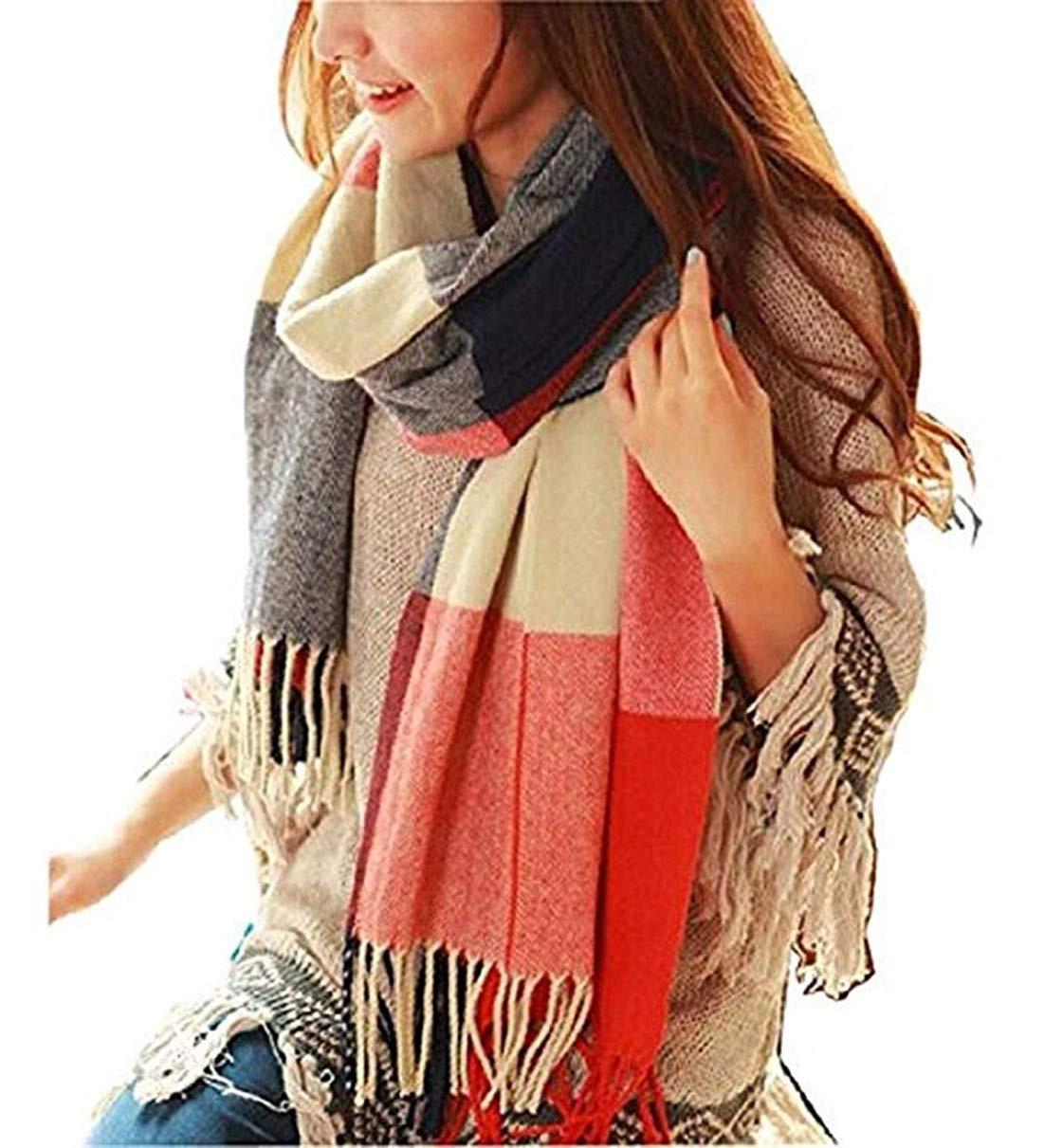 Only-bags.store, Echarpe Triangle Carreaux Hiver Pashmina Doux Pompons