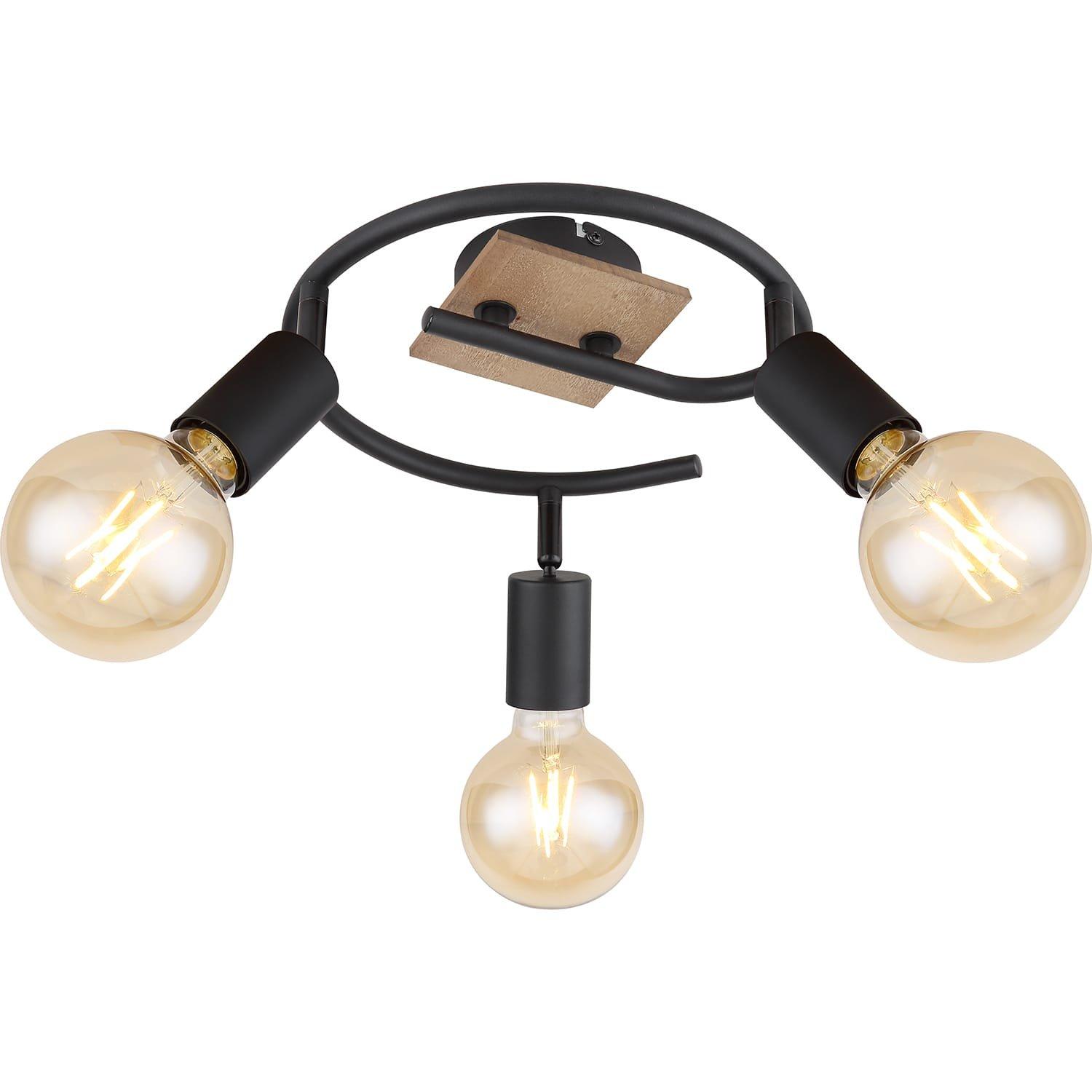 Spot en métal noir, bois brun, sans abat-jour, : 250 mm, H : 140 mm, exclu 3x E27 40W 230V.