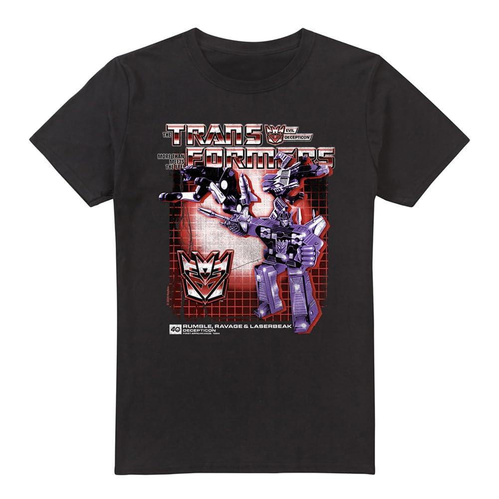 Ce T-shirt présente un imprimé graphique saisissant des emblématiques Decepticons Rumble, Ravage et Laserbeak de The Transformers. Le design capture l'esthétique classique de la franchise bien-aimée, en faisant une pièce remarquable pour les fans.