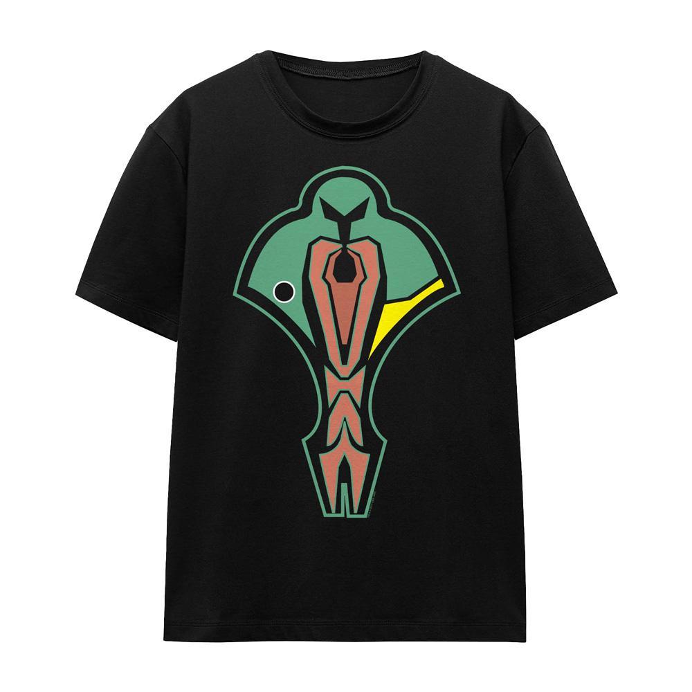 Ce T-shirt présente un imprimé graphique distinctif sur le devant, offrant un design unique et accrocheur. Le col rond classique et les manches courtes offrent une coupe régulière confortable et polyvalente pour un usage quotidien.