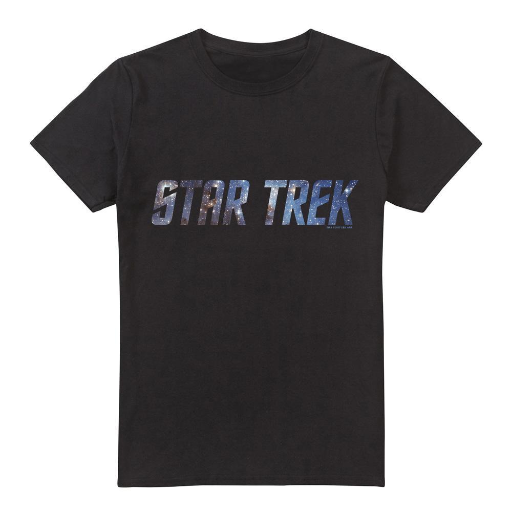 Ce t-shirt à manches courtes présente un design classique à col rond, offrant une coupe confortable et polyvalente. Le devant est orné d'un graphique distinctif "STAR TREK", où les lettres sont remplies d'un motif cosmique captivant, ajoutant une touche unique à cet essentiel du quotidien.