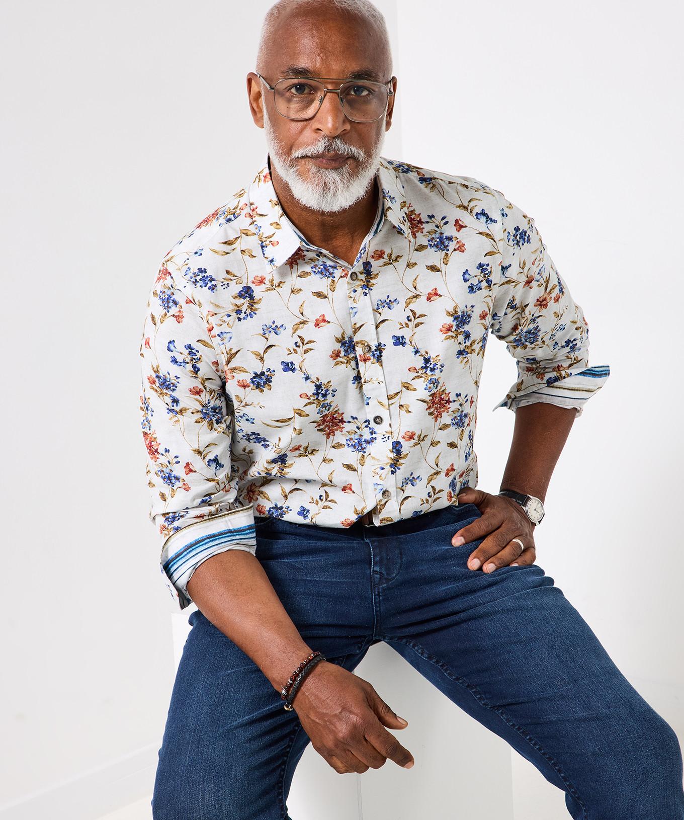 Cette chemise classique arbore un motif floral éclatant, offrant un ajout élégant et polyvalent à toute garde-robe. Le design comprend un col traditionnel et une fermeture boutonnée sur toute la longueur, assurant une apparence soignée.