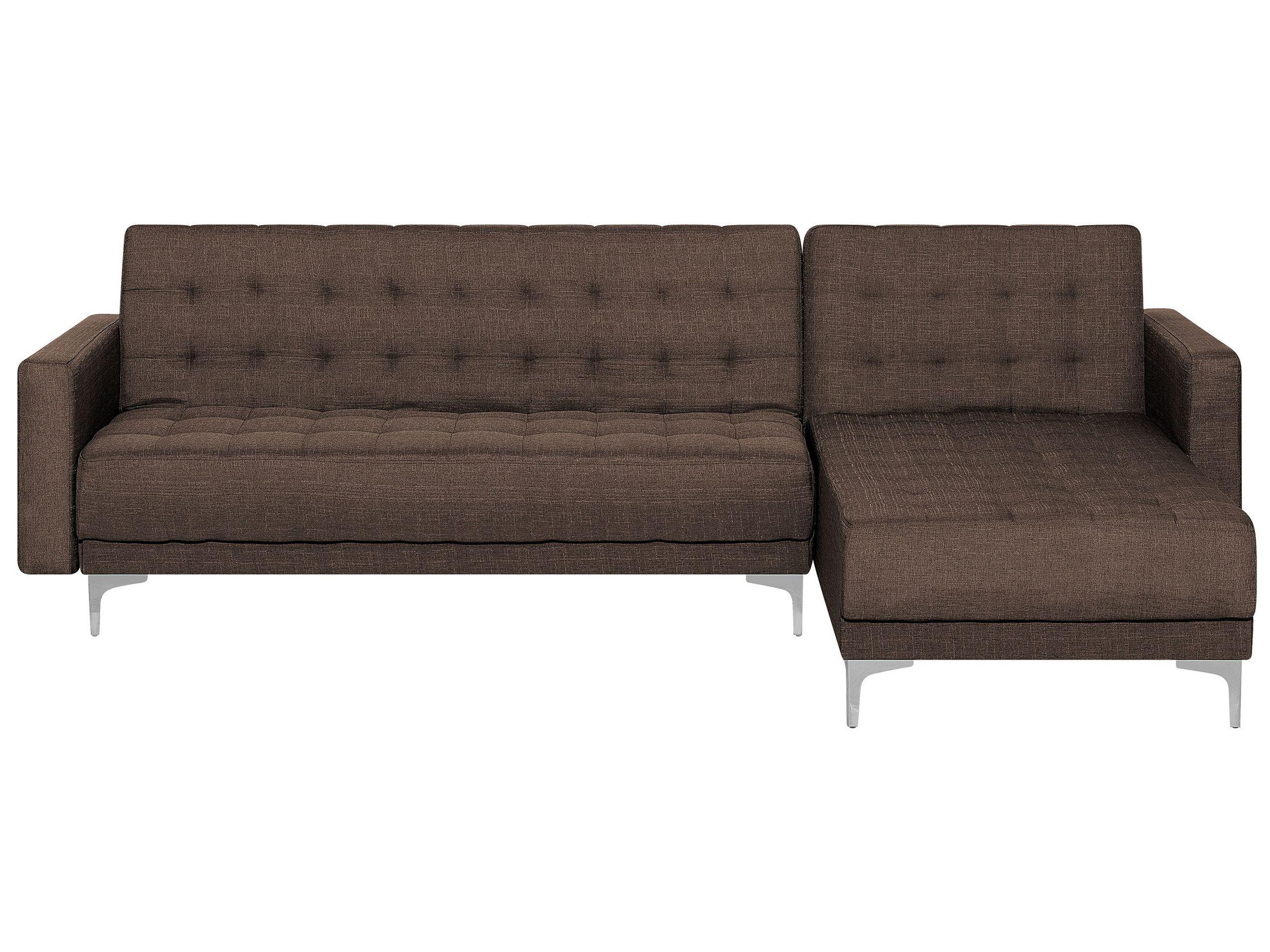Canapé convertible marron foncé avec méridienne. Ce canapé d'angle marron foncé transformera votre salon en un espace de vie convivial et confortable. Grâce à un design sobre et des lignes épurées, ce canapé au look résolument moderne apportera un style contemporain à votre séjour et vous permettra de recevoir vos invités avec un maximum de confort. Ce canapé est très pratique grâce à sa fonction convertible. Les deux dossiers sont rabattables indépendamment pour transformer le canapé en lit en toute simplicité.