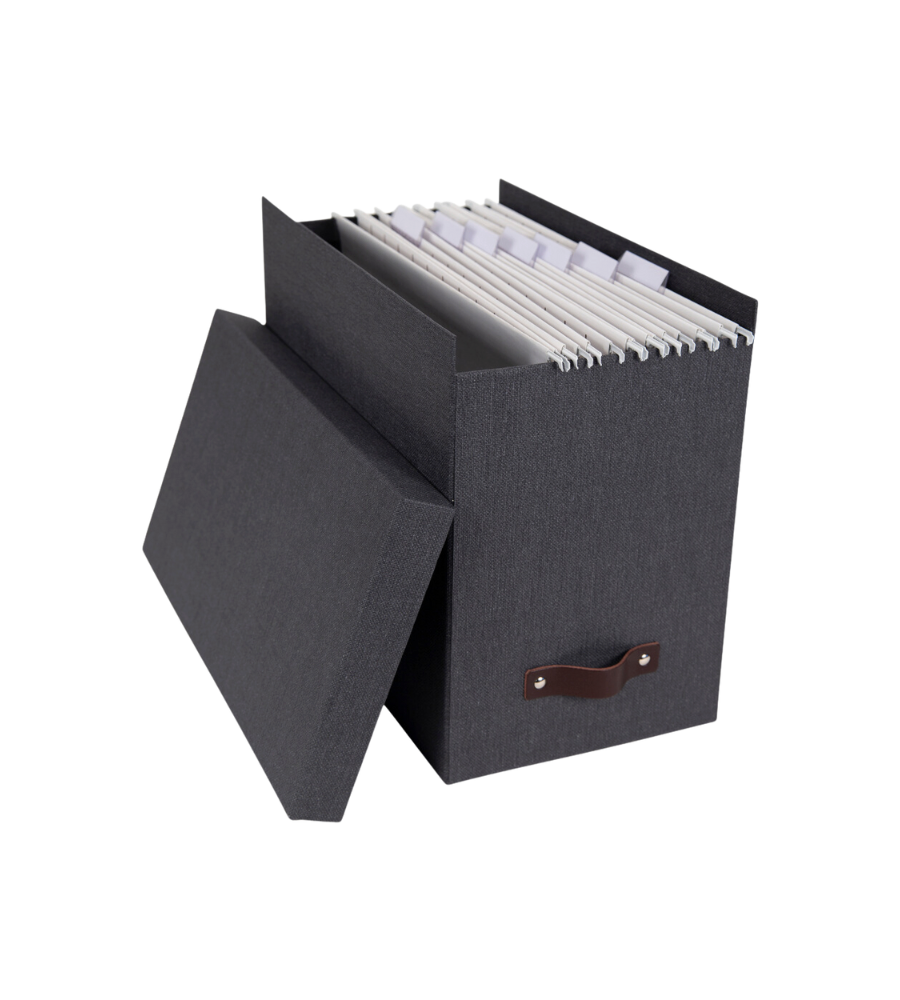 La boîte pour dossiers suspendus JOHAN en noir met de l'ordre dans les documents. Elle est idéale pour organiser les documents importants au format A4, comme les factures, les recettes, les manuels de produits et les garanties.