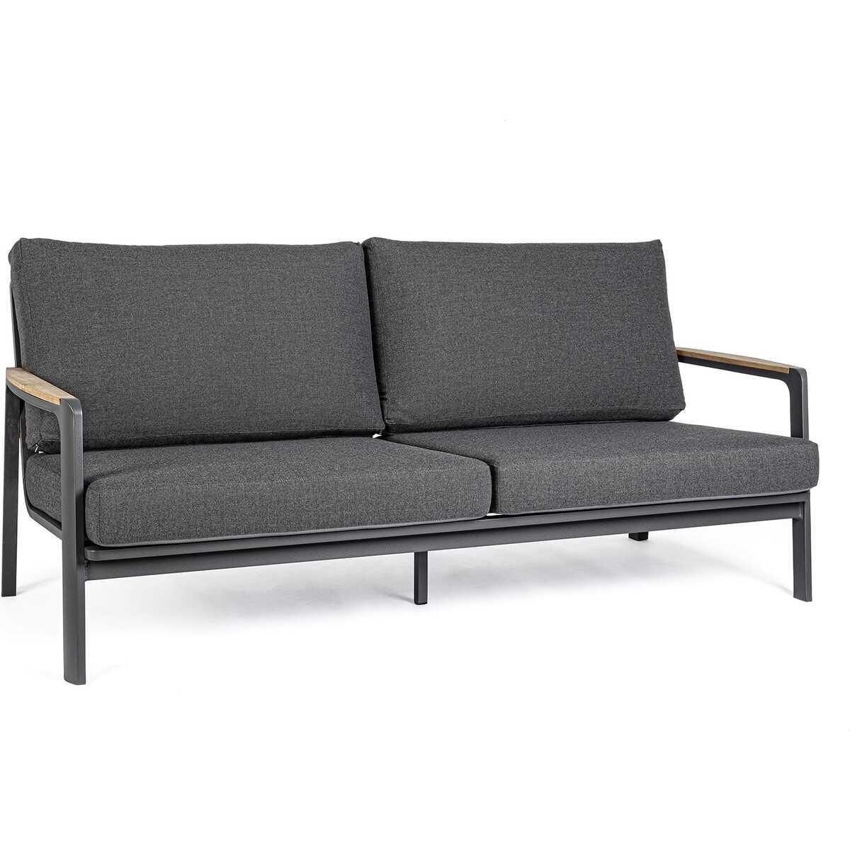 Canapé de jardin Jalisco 2-3 places avec coussins anthracite. Aluminium avec revêtement en poudre (polyester). Accoudoirs avec inserts en teck. Coussins d'assise et de dossier déhoussables en tissu acrylique.