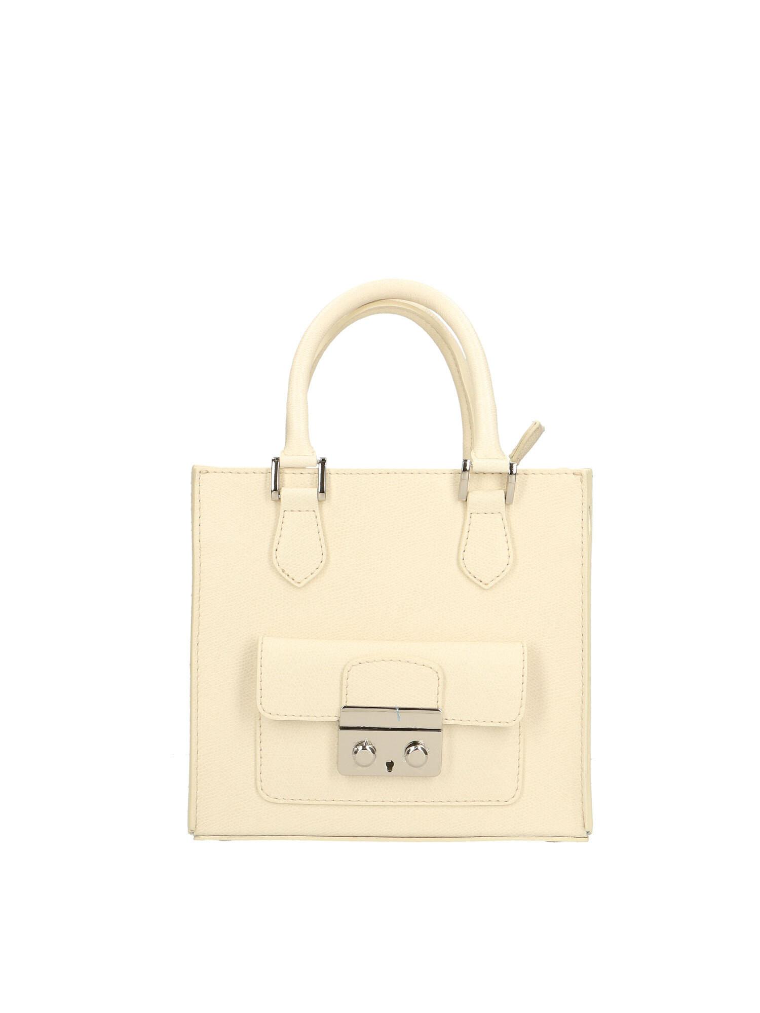 Sac à main pour femme. La fermeture est avec zip. Les poches intérieures sont une avec fermeture éclair et une ouverte. Les poches extérieures sont une sur le devant avec fermeture éclair. La bandoulière est réglable et amovible en cuir. La poignée est en cuir. Il y a un compartiment interne. Le matériau extérieur est du cuir véritable froissé. À lintérieur, il est doublé en tissu 70 % coton - 30 % polyester. Dimensions : 21x20x10 cm. Fabriqué en Italie