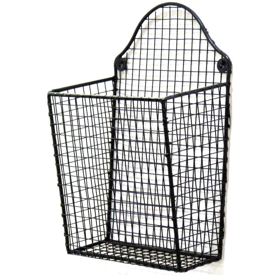 Etagère murale Etagère à paniers avec 1 panier, pour montage mural, couleur : noir, matériau : fil métallique, 28x15x45 cm