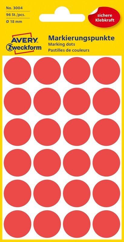 Avery-Zweckform, AVERY ZWECKFORM Markierungspunkte rot 3004 96 Stück 18mm