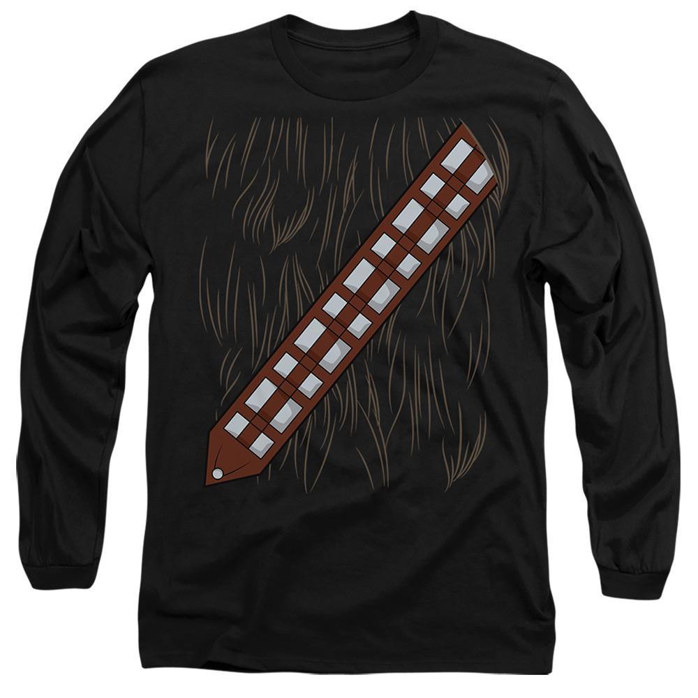 Ce t-shirt à manches longues présente un imprimé graphique inspiré du bandoulière et de la fourrure emblématiques de Chewbacca. Le design est imprimé sur un t-shirt confortable à manches longues, ce qui en fait un moyen amusant et facile de montrer son appréciation pour le personnage adoré.