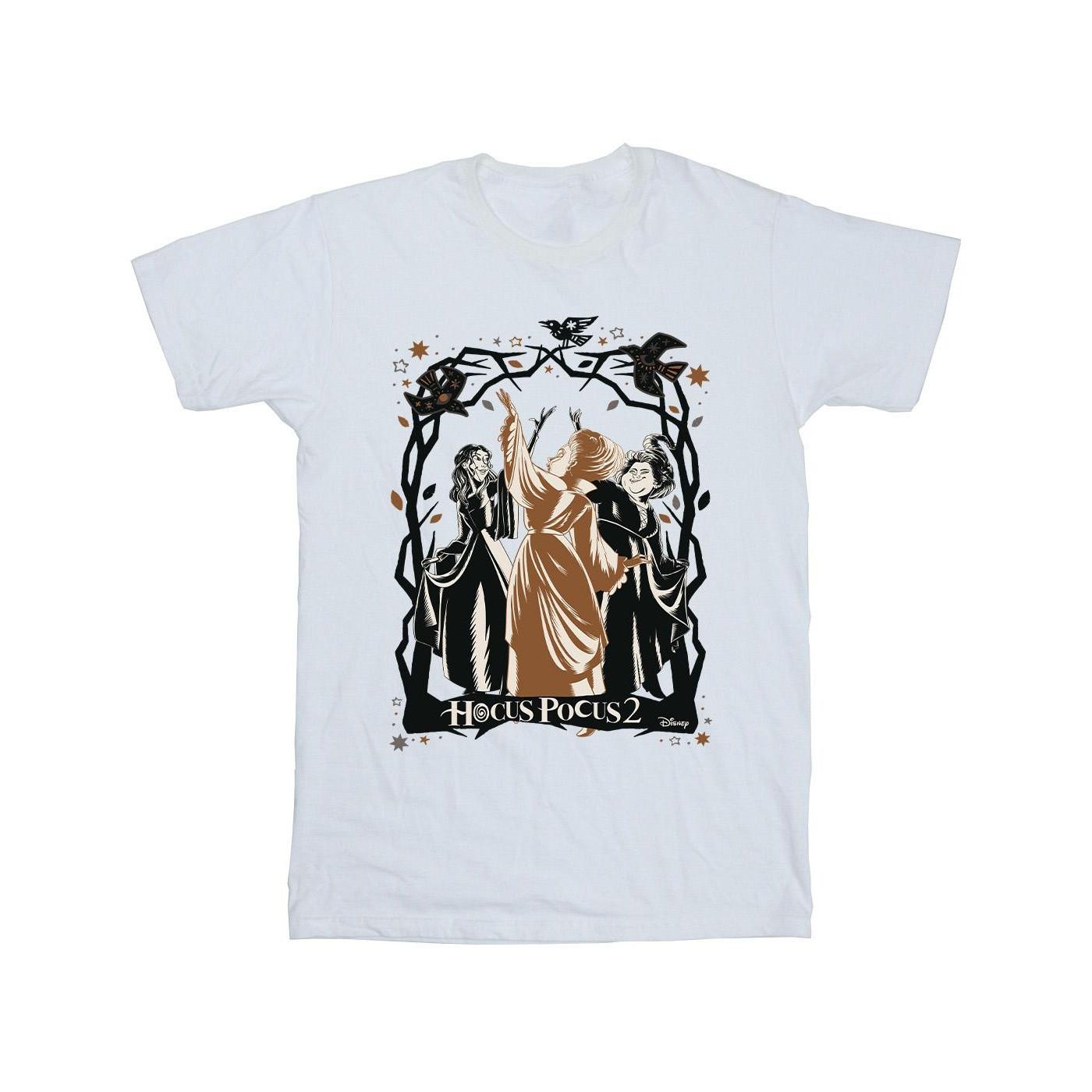 Ce T-shirt Hocus Pocus présente un imprimé graphique captivant inspiré du film bien-aimé. Le design met en scène les emblématiques sœurs Sanderson dans une illustration stylisée, encadrée par une bordure feuillue sombre et complexe avec de subtils accents étoilés. Le logo "Hocus Pocus 2" est affiché en évidence sous les sœurs, ajoutant au charme du T-shirt.