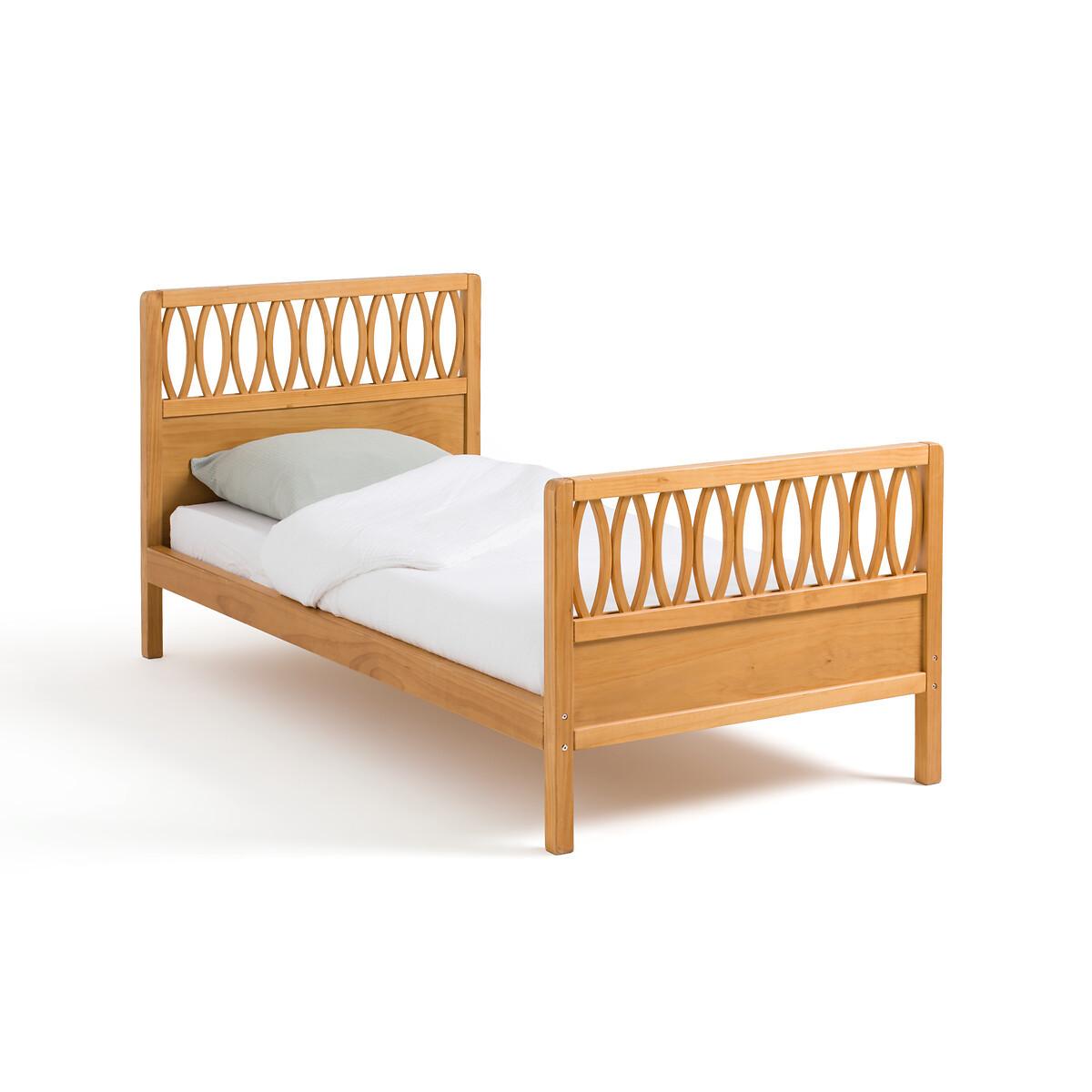 Reprenant les codes design vintage des années 50 et 60, le lit Malaya en pin massif habille sa tête et son pied de lit d'un joli décor croisillons.