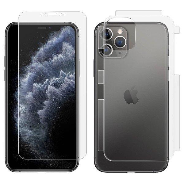 Film souple avant et arrière Apple iPhone 11 Pro anti-rayures. Revêtement antibactérien éliminant jusqu'à 99% des bactéries. Revêtement anti-traces. La fluidité du tactile et le rendu de l'affichage conservés. Laisse les boutons et les ports accessibles.