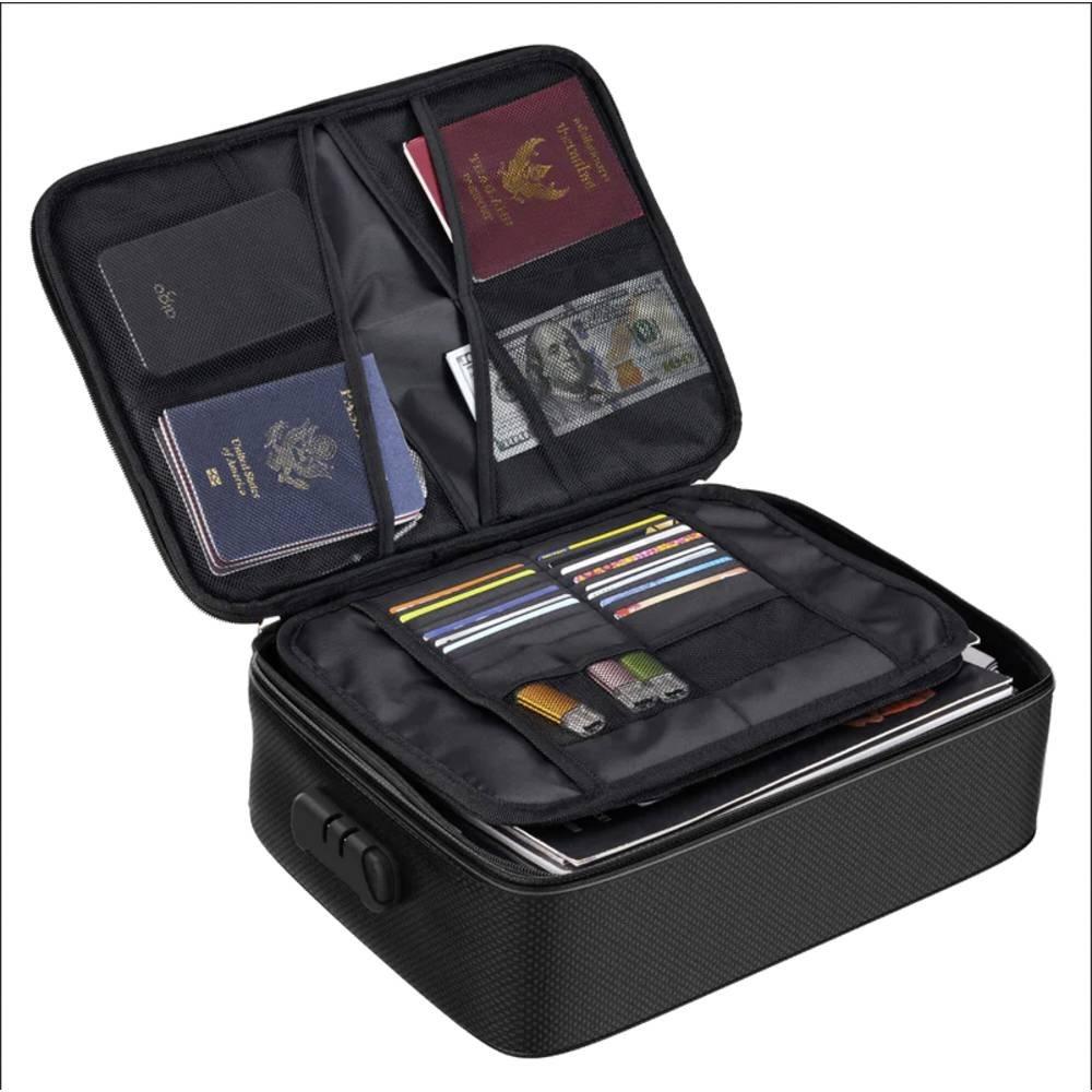 Le coffret « BIG » protégé contre les incendies et les projections d'eau est le lieu de rangement idéal pour les objets personnels les plus importants : les clients, les passeports, les contrats. Un cadenas à chiffres empêche l'ouverture par des personnes non autorisées. Avec différentes poches intérieures (partiellement avec fermeture à glissière). Grâce à un système de rangement intelligent, vous disposez rapidement des ustensiles les plus importants à portée de main et les retrouvez même après un événement de brume.Volume maximal grâce au système de classement :Cartes (crédit), argent comptant, mémoire USB, tablettes informatiques, passeports, Certificats, ordinateur portable, documents.