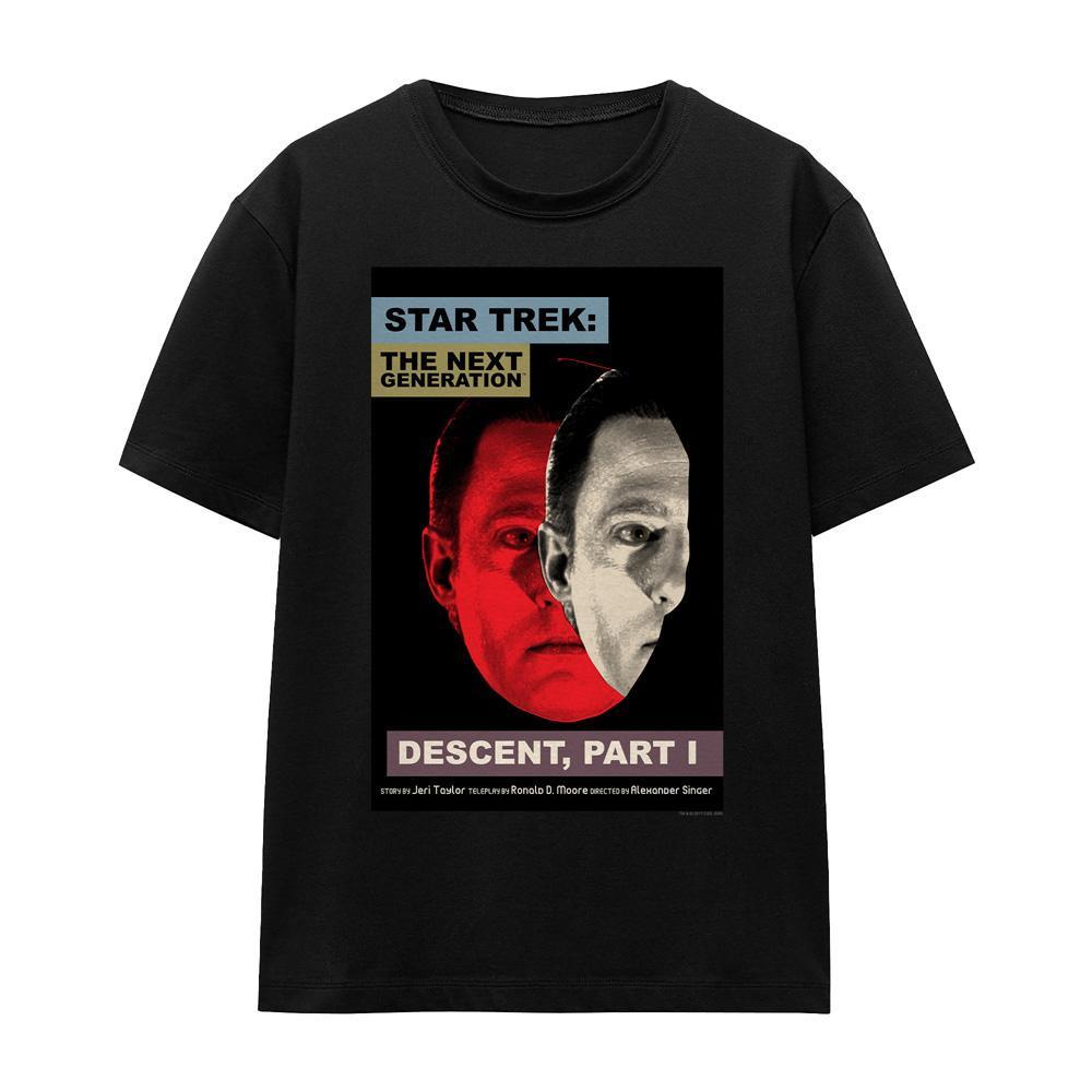 Ce T-shirt présente un imprimé graphique inspiré de Star Trek: The Next Generation, plus précisément de la saison 6 épisode 26, «Descent, Part I». Le design capture l'essence de la série de science-fiction emblématique, en faisant une pièce distinctive pour les fans.