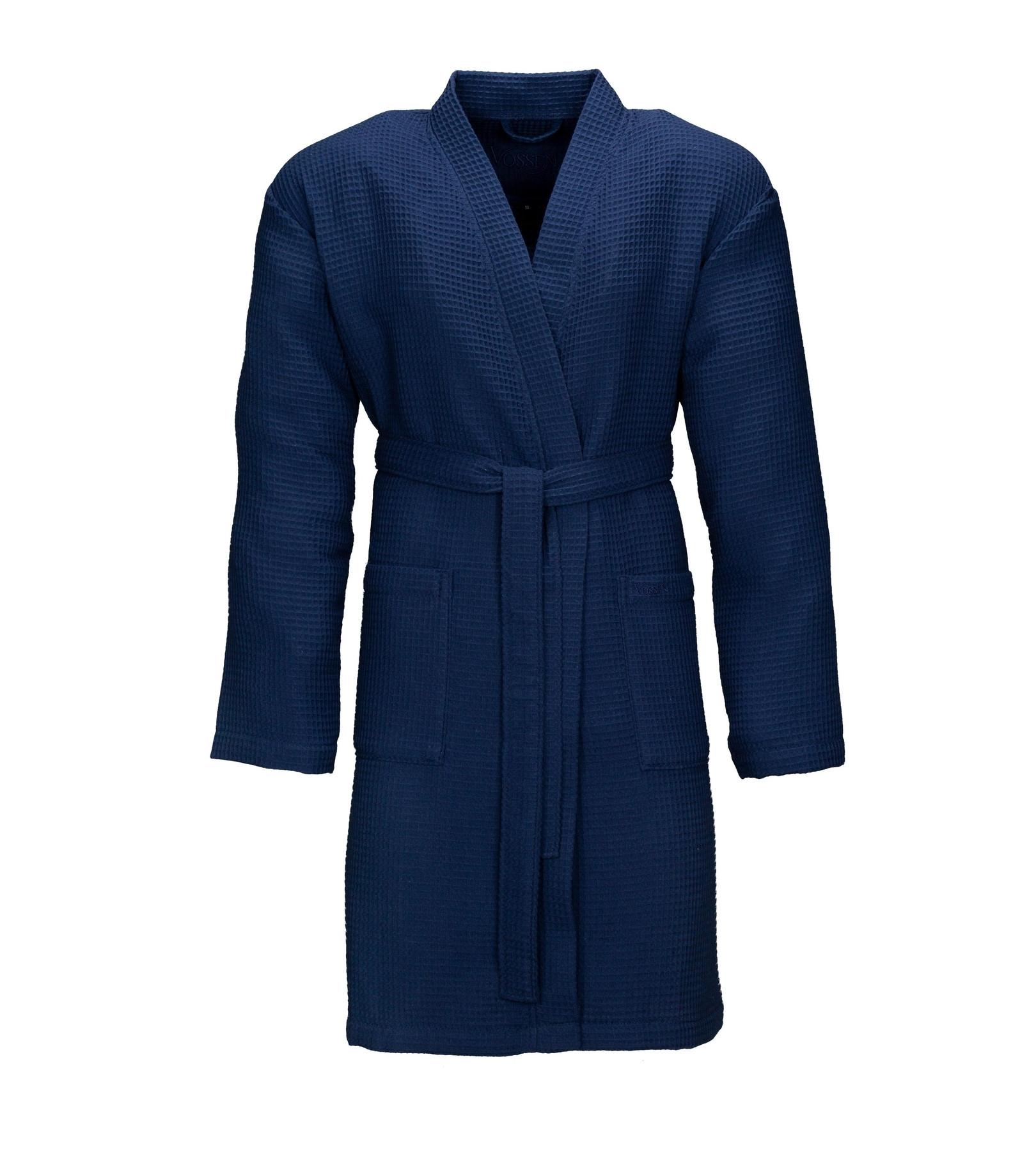 Le peignoir Rom présente une texture gaufrée classique, offrant une sensation de légèreté et de confort. Ce peignoir est conçu pour la détente et l'usage quotidien, apportant une touche simple mais élégante à une collection de vêtements d'intérieur.