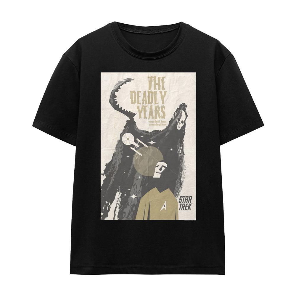 Ce T-shirt présente un imprimé graphique unique inspiré de « The Deadly Years », épisode 41 de Star Trek: The Original Series. Le design capture l'essence de la série de science-fiction classique avec une représentation stylisée des thèmes de l'épisode.