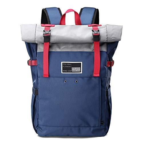 * Expandable and durable: made of water-repellent, tear-resistant and scratch-resistant polyester to ensure its durability and easy cleaning. Roll top design means it can provide larger capacity if required. Rolled dimensions: 43 x 27 x 13 cm; unrolled: 57 x 27 x 13 cm. * Spacious and well thought out structure: large main compartment for everyday essentials, 1 x zip pocket and 2 x pockets for small items, padded laptop sleeve is covered with fleece fabric to provide better protection for laptop. 1 x front zip pocket, 2 x side pockets with elastic belt. 1 x anti-theft zip pocket on the back can store your valuable items. The vertical wipe zip allows easy access to the main compartment. * Stylish and unisex: the casual daypack fits well with the stylish design. Designed with casual and unisex style. Perfect for holidays, business trips, school, gym, climbing, hiking or daily life. * Ergonomic design and comfortable: it is comfortable to carry the backpack, as there are 3x breathable mesh pads on the back, which provide ventilation between the backpack and the body. The padded adjustable shoulder straps reduce pressure on the body.