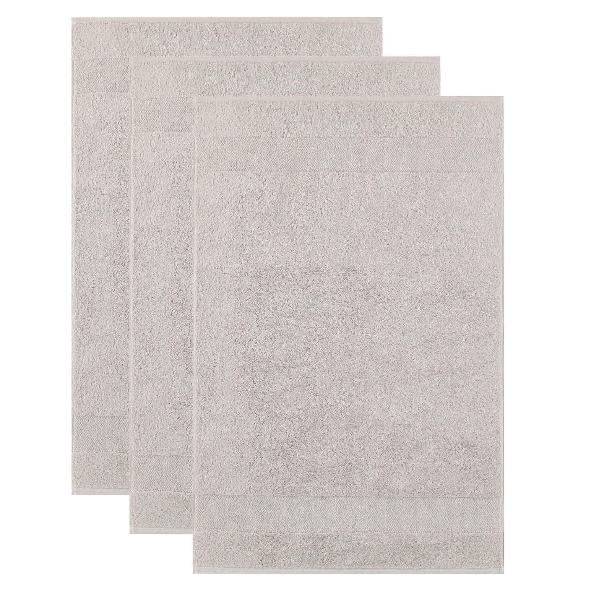 Trois serviettes unies de Villeroy & Boch avec de discrètes rayures en relief et une accroche. Qualité éponge haut de gamme à tissage serré, 100% coton. Fabriqué en Allemagne.