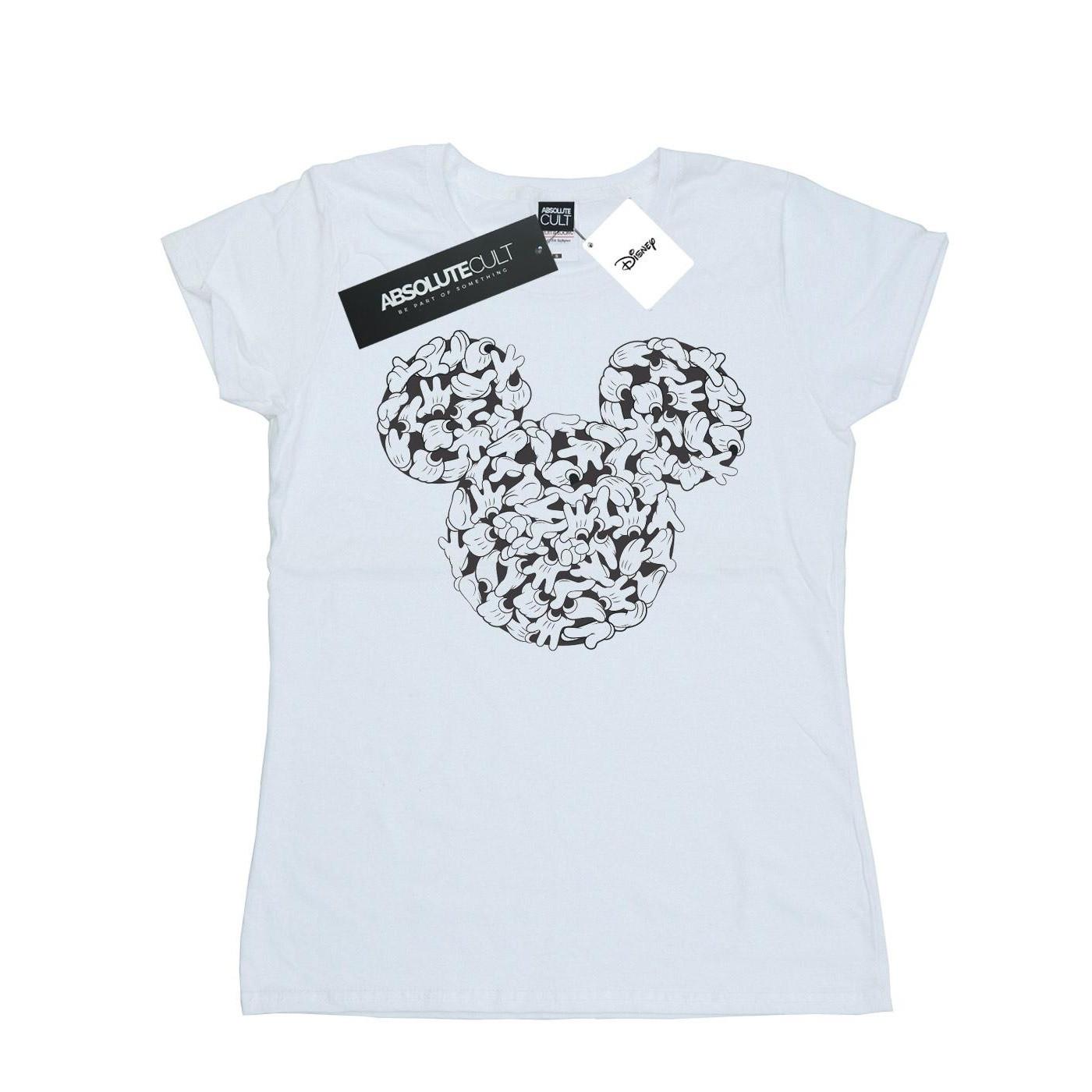 Ce T-shirt présente un imprimé graphique unique de la tête de Mickey Mouse, astucieusement formée par un arrangement de mains. Il offre une coupe régulière confortable et un design classique à col rond, ce qui en fait un ajout polyvalent à toute garde-robe décontractée.