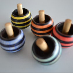 La toupie à revers est une toupie physiquement spéciale qui tourne à l'envers en tournant. Elle a été brevetée par H.Sperl le 7 octobre 1891, 12 couleurs différentes, frêne, coloré avec lignes noires, Ø 32mm.