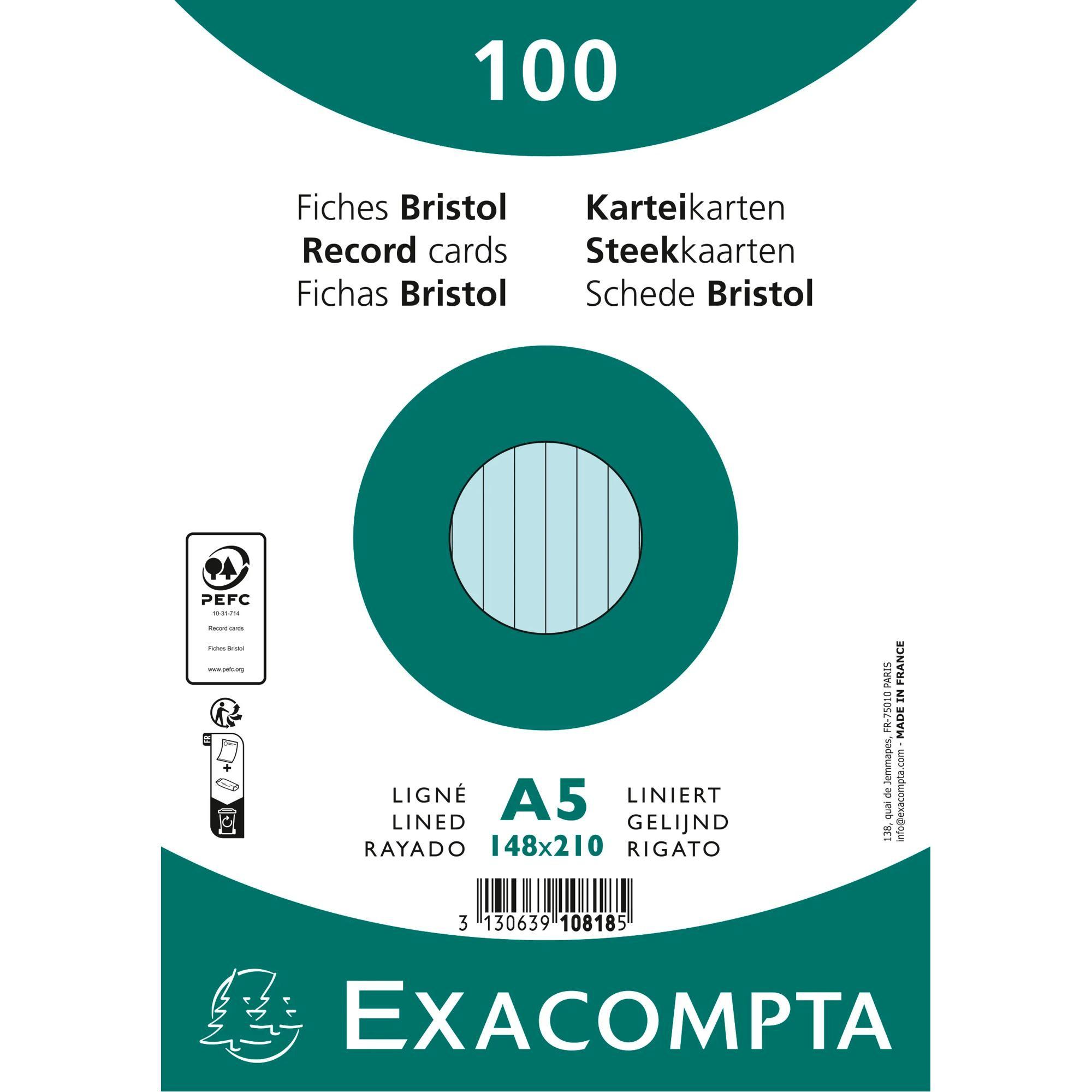 Exacompta Paquet 100 fiches sous film - bristol ligné non perforé 148x210mm - x 10