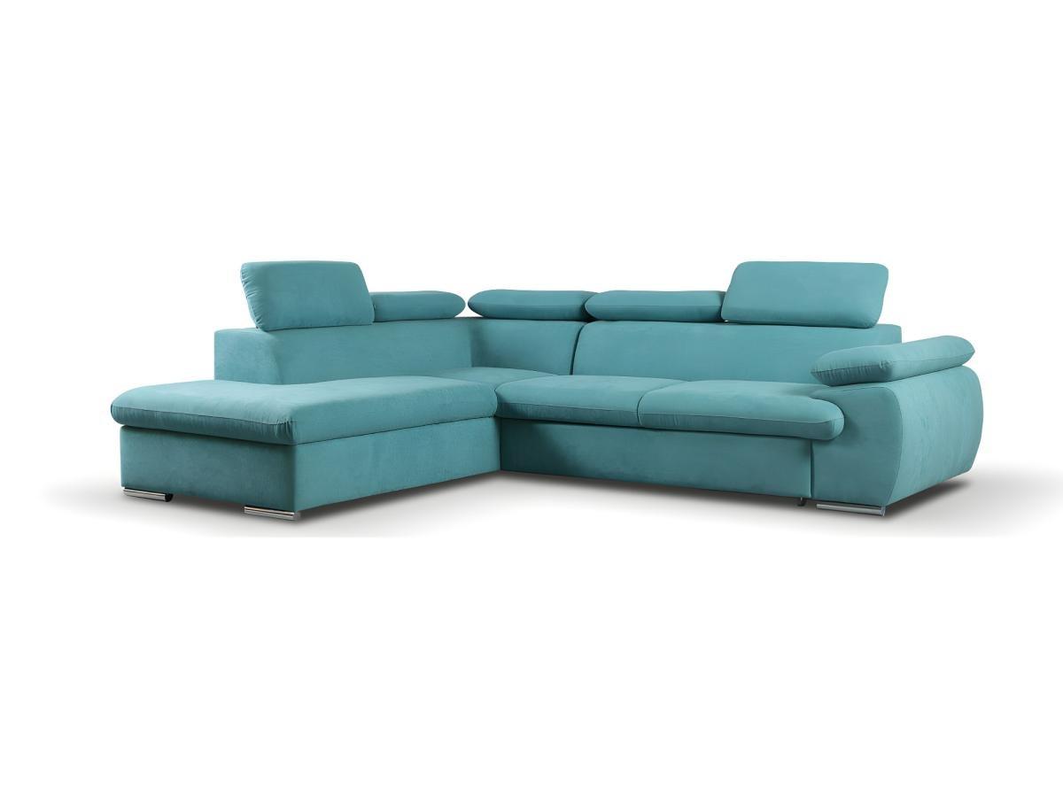 Vente-unique, Canapé d'angle conible en tissu avec coffre de rangement FABIEN Turquoise Angle gauche