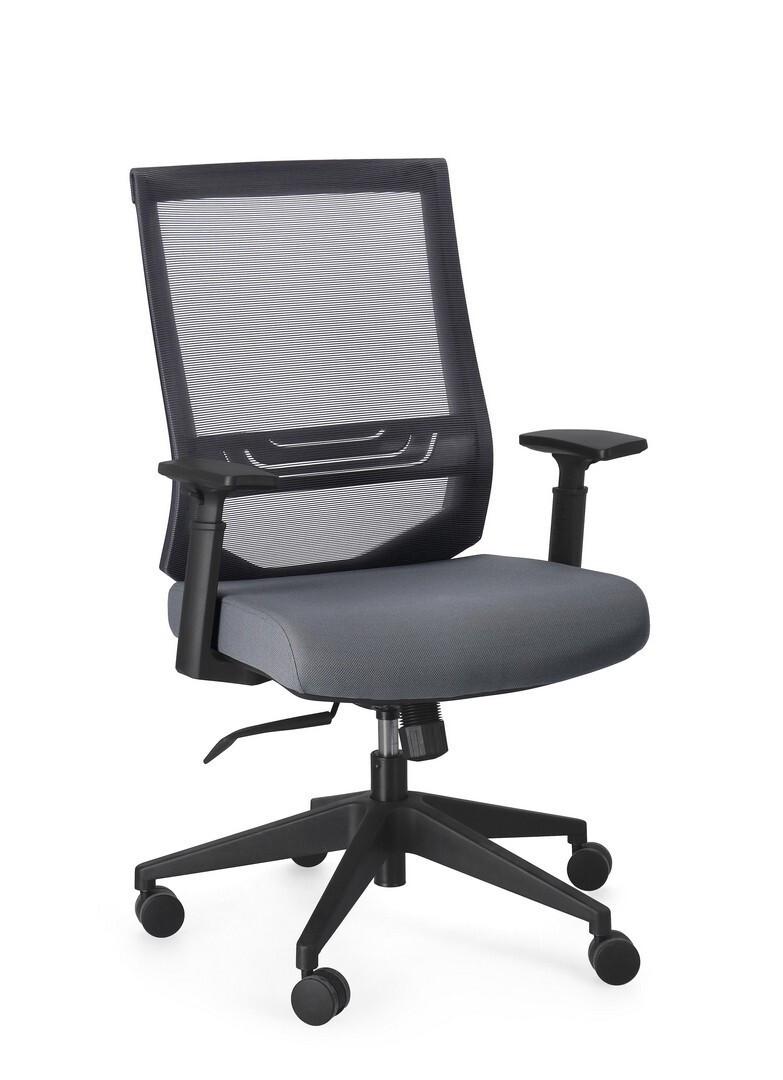 Rembourrage d'assise confortable en mousse de polyuréthane haute densité Dossier avec soutien lombaire intégré Housse en maille polyester respirante Roues en nylon stables pour une mobilité aisée Hauteur d'assise et accoudoirs réglables pour un confort ergonomique Mécanisme synchrone avec 3 positions d'arrêt Montage facile nécessaire