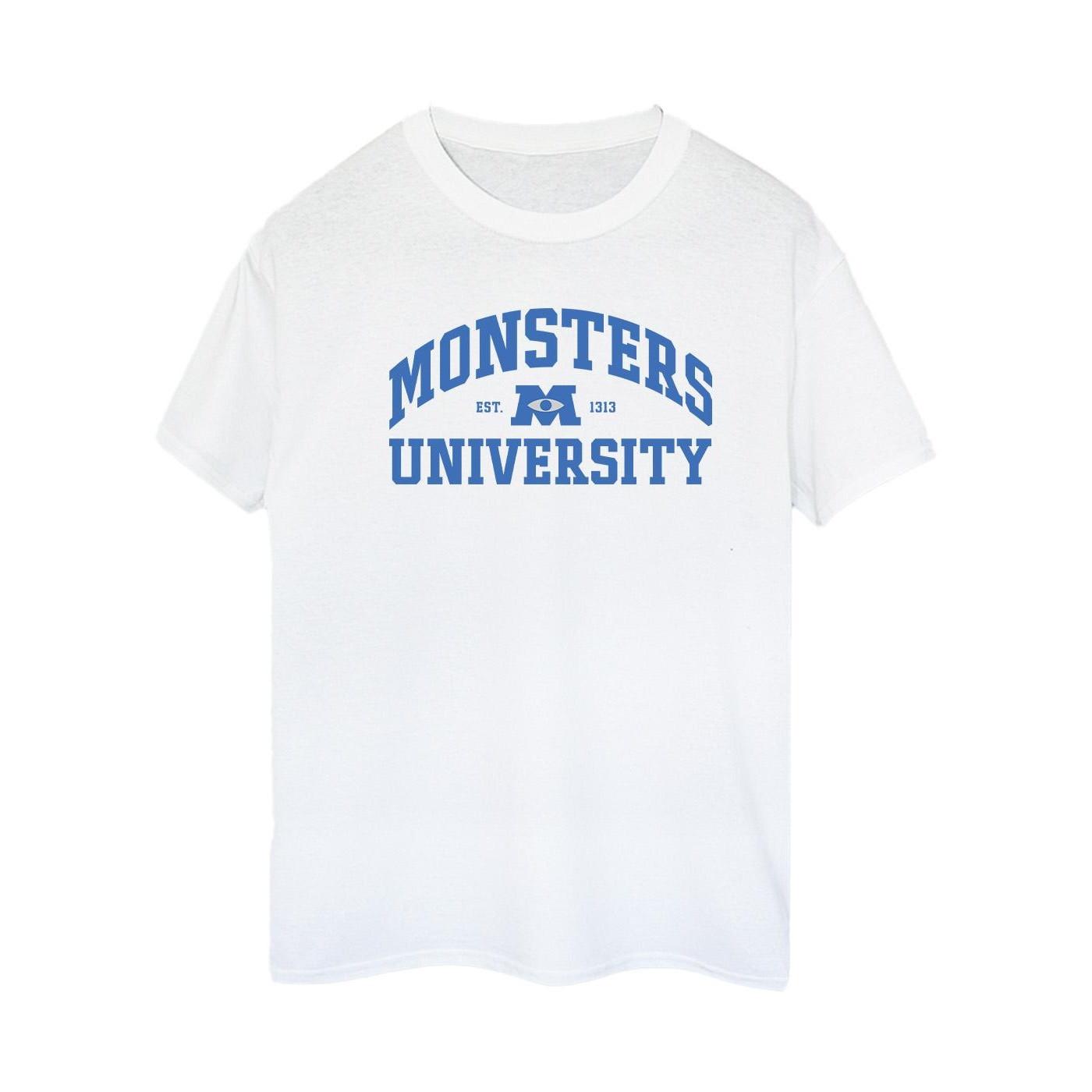 Ce T-shirt présente un design classique avec un col rond et des manches courtes, ce qui en fait un ajout polyvalent à toute garde-robe. Le devant est orné d'un graphique "Monsters University" proéminent, affichant une esthétique inspirée des universités.