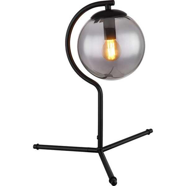 Lampe à poser métal noir mat, verre fumé, câble textile noir, interrupteur à bascule sur le câble, : 350mm, H: 350mm, longueur de câble 1500mm, exclu 1x E14 25W 230V.