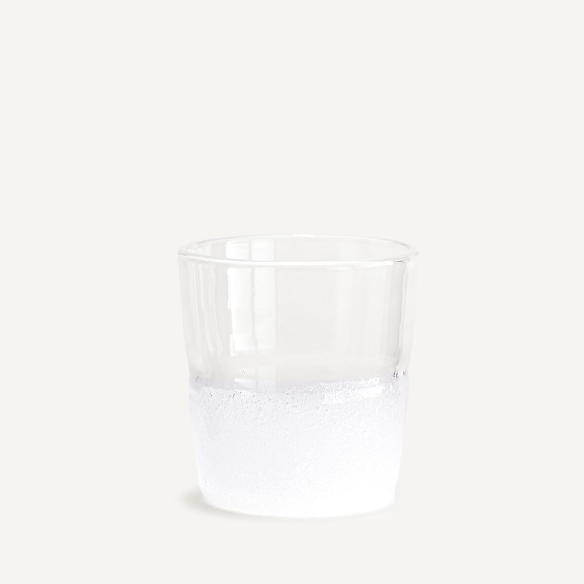 Leur finition subtile accroche la lumière et le regard. Ces 6 verres à eau offrent un jeu de contrastes entre la partie haute en verre transparent et la partie basse qui est travaillée en verre bullé blanc opalescent.