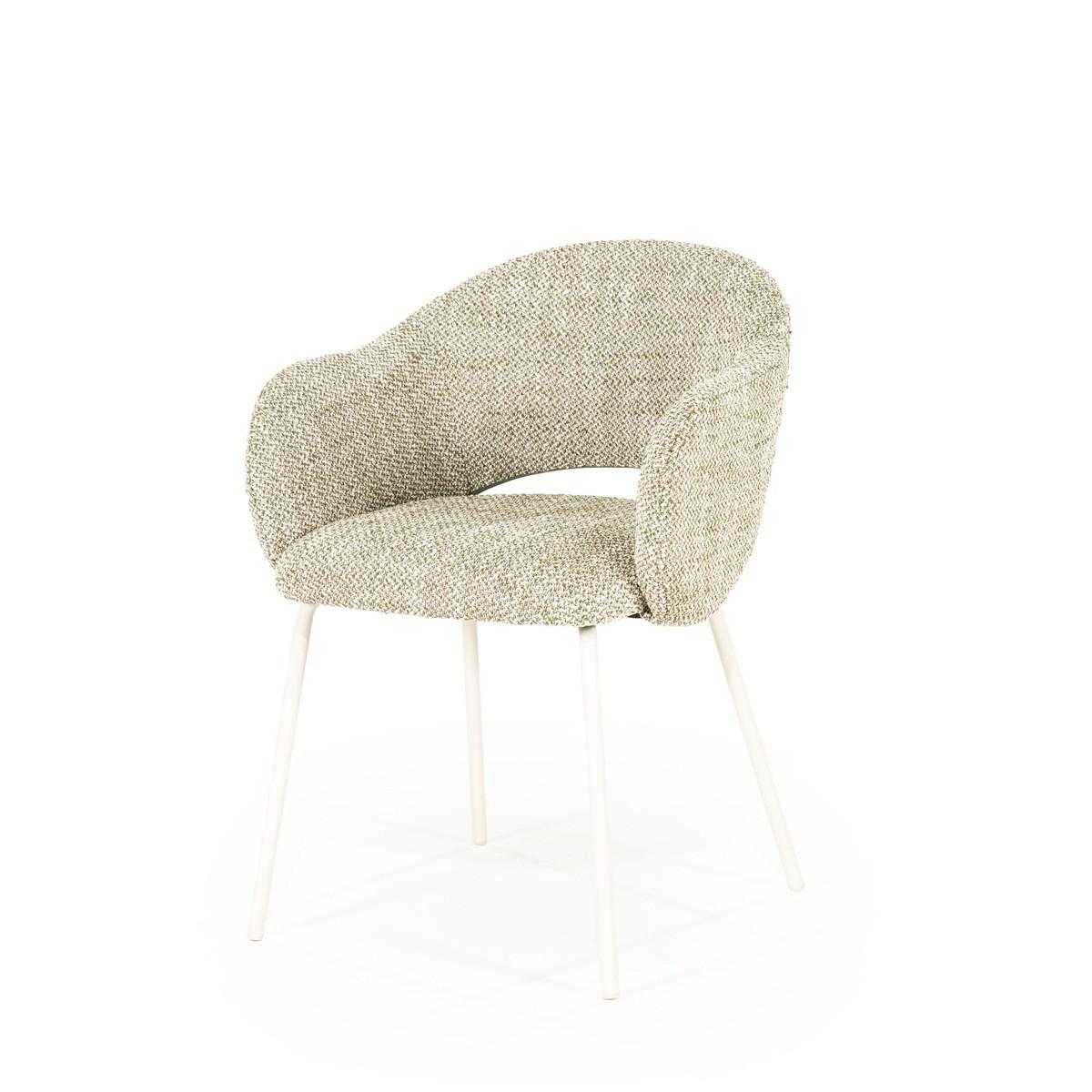Découvrez l'élégante chaise à accoudoirs Story dans un ton vert élégant qui confère une touche moderne à chaque pièce. La chaise combine un tissu de haute qualité avec du métal robuste et offre un confort d'assise optimal grâce à son rembourrage souple en mousse.