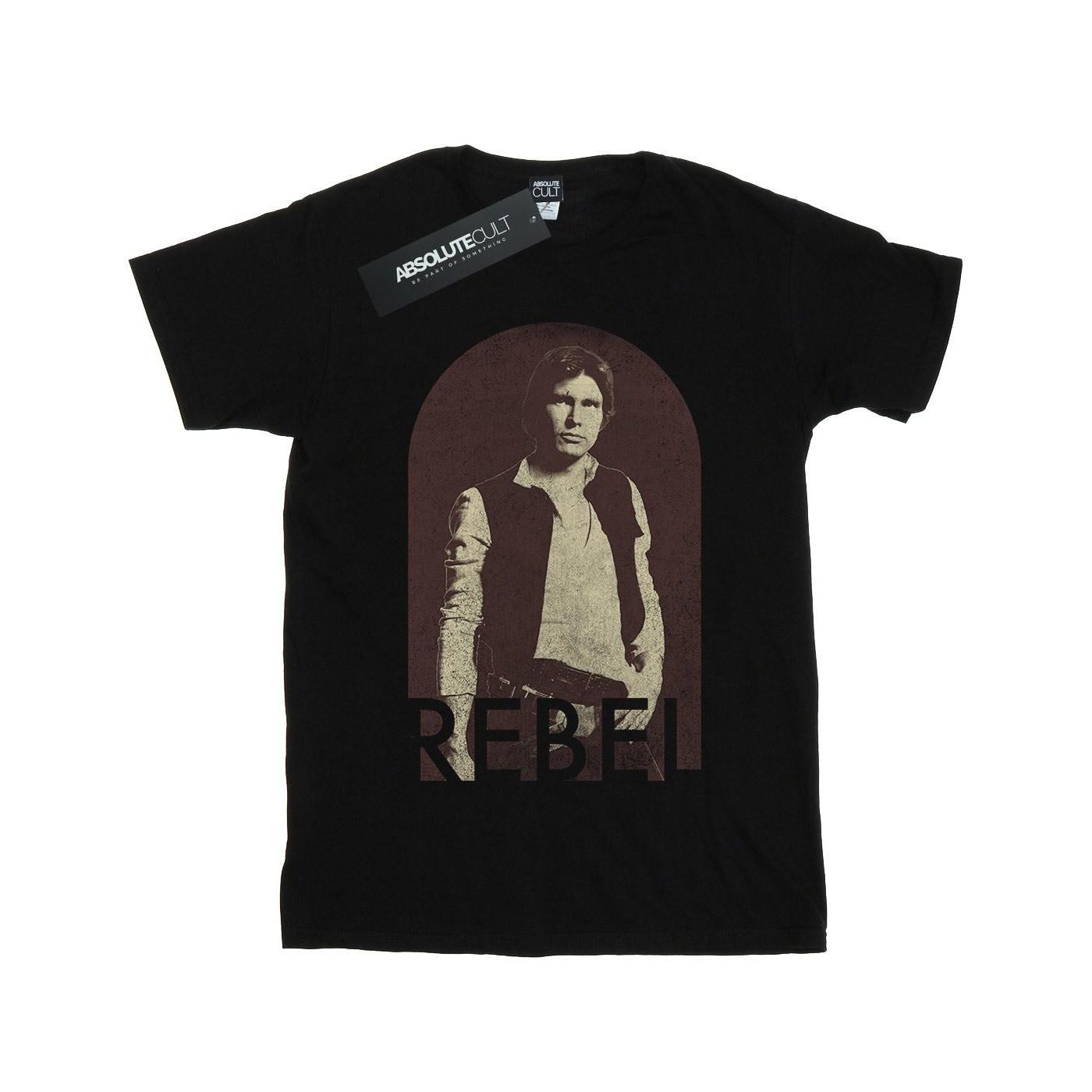 Ce T-shirt Rebel présente un col rond classique et des manches courtes, offrant une coupe confortable et polyvalente. Le devant du T-shirt arbore un imprimé graphique de Han Solo avec le mot « REBEL » en dessous, ce qui en fait une pièce distinctive pour les fans.