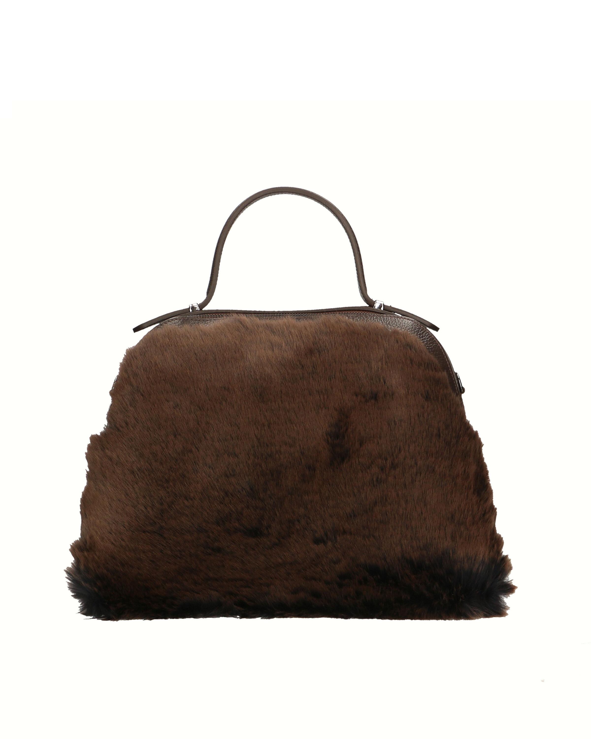 Sac à main pour femme. La fermeture est avec zip. Les poches intérieures sont une avec fermeture éclair. Les poches extérieures sont une à l'arrière avec fermeture éclair. La bandoulière est réglable et amovible en cuir. La poignée est en cuir. Il y a deux compartiments internes. Le matériau extérieur est une véritable peau de poney et sauvage. À lintérieur, il est doublé en tissu 70 % coton - 30 % polyester. Dimensions : 33x28x12 cm. Fabriqué en Italie