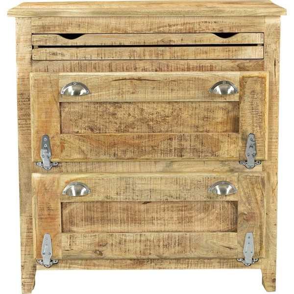 Meuble à chaussures en manguier massif avec 2 abattants et 1 tiroir pour environ 12 paires de chaussures, naturel, 85x40x90