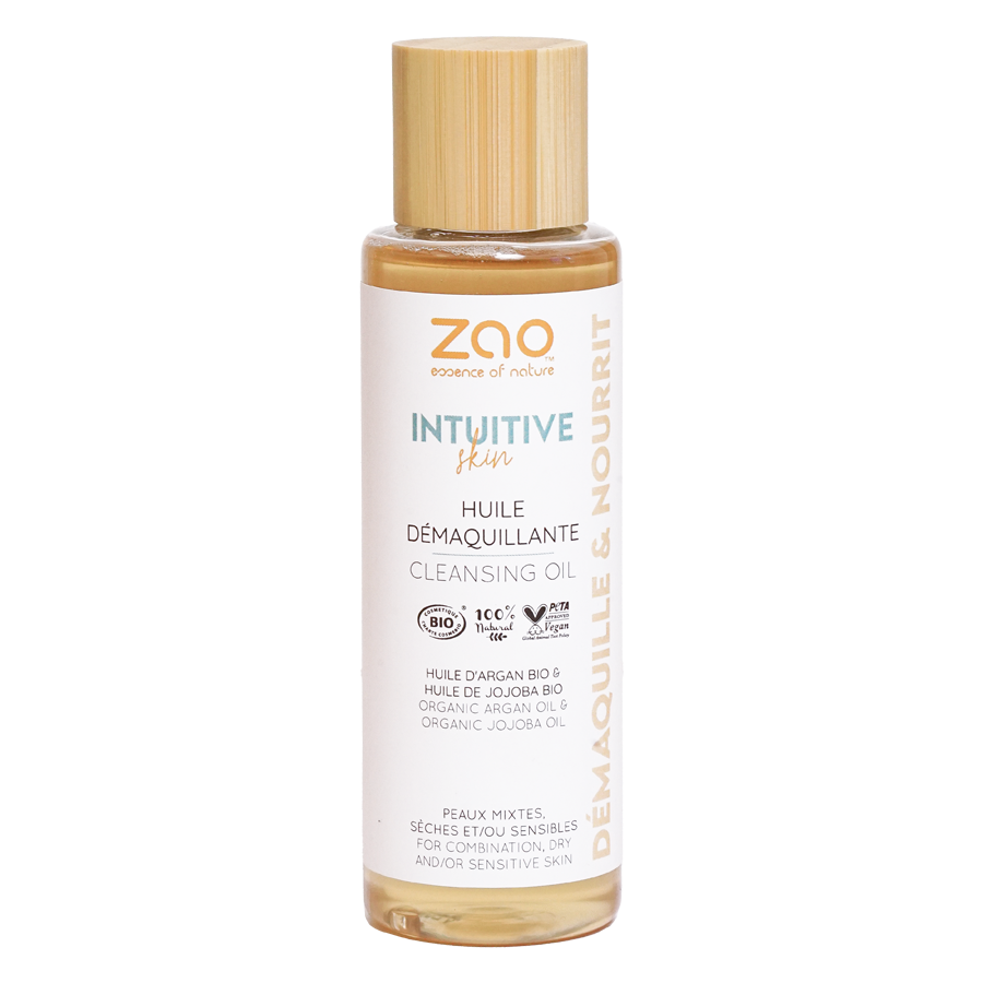 Découvrez ZAO Intuitive skin : gamme de soin visage certifiée bio, naturel, vegan et Made in France. Notre huile démaquillante, douce et nourrissante, permet de démaquiller l'ensemble du visage en laissant un fini doux sur la peau. Elle est idéale pour le démaquillage des yeux, y compris du waterproof. Cette huile démaquillante a été conçue pour respecter votre peau et la nature. Certifiée bio, 100% naturelle et vegan elle saura se glisser dans votre rituel du soir avec douceur. Composée dhuile de jojoba bio et dhuile dargan bio elle est idéale pour les peaux mixtes, sèches et/ou sensibles.
