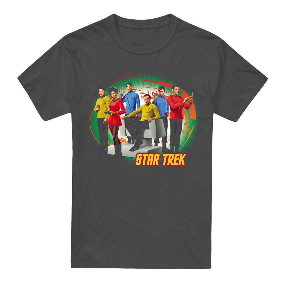 Ce T-shirt présente un col ras-du-cou classique et des manches courtes, offrant une coupe confortable et polyvalente pour un usage quotidien. Le devant du T-shirt affiche un imprimé graphique vibrant de l'équipage emblématique de Star Trek Enterprise, ce qui en fait un choix parfait pour les fans de la série légendaire.