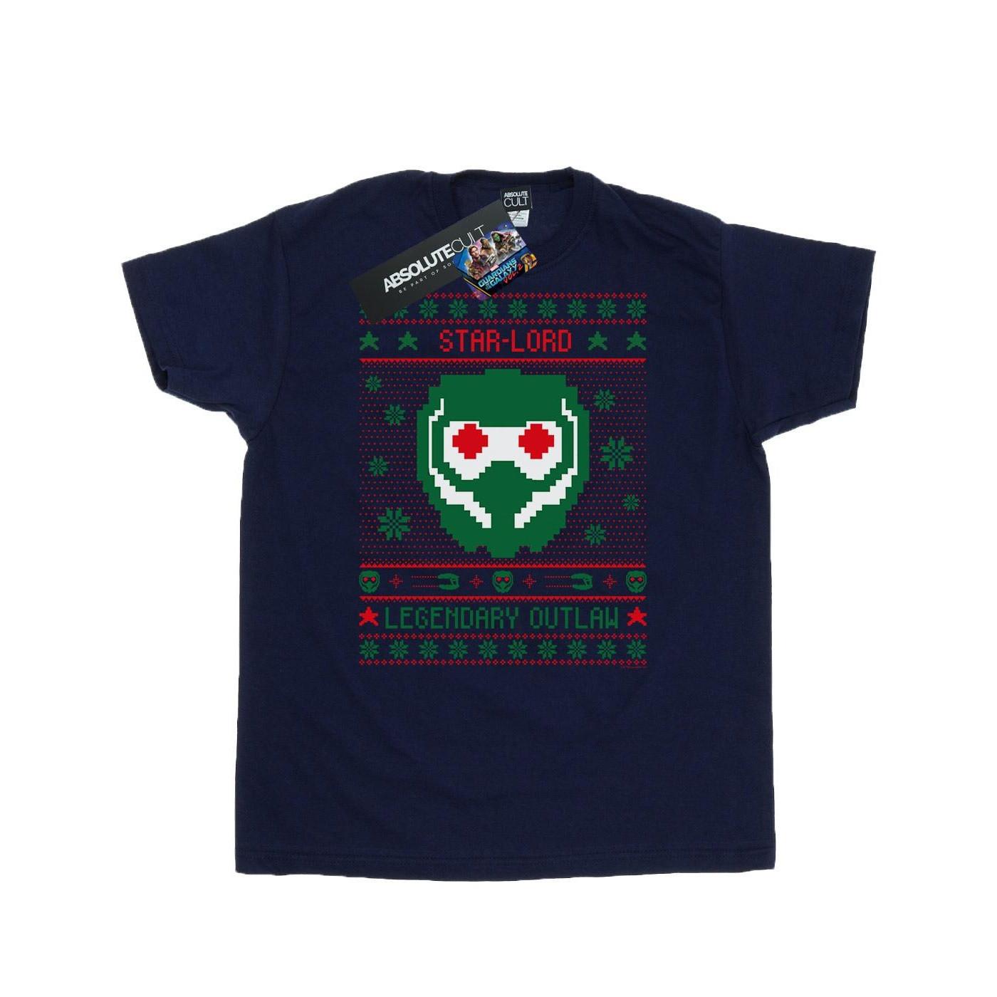 Ce T-shirt Guardians Of The Galaxy Vol. 2 présente un design festif inspiré de Star-Lord, ce qui en fait un ajout unique à la garde-robe de tout fan. Le graphique sur le devant met en valeur le masque de Star-Lord dans un motif pixelisé sur le thème des fêtes, entouré d'éléments décoratifs et de texte.