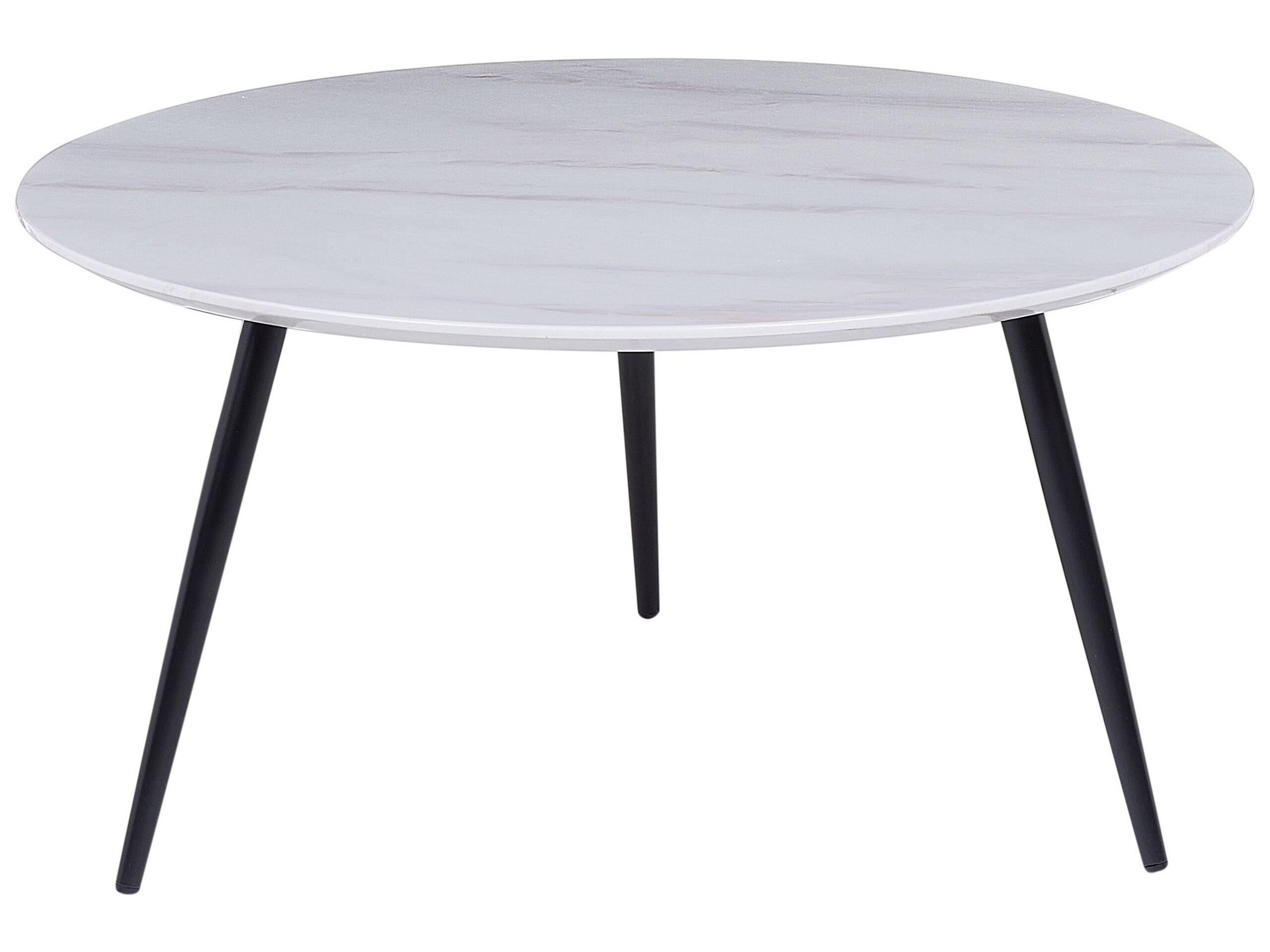 Table à café sur trépied. Cette table basse, de forme classique, est une belle pièce moderne qui rehaussera l'aspect de votre salon et rendra votre thé de l'après-midi plus agréable. Elle est dotée d'un plateau rond avec un effet marbre très tendance et de pieds fins en métal qui complètent le design. La table sera très esthétique et fonctionnelle à côté de votre canapé, de votre fauteuil ou de n'importe quel autre endroit de votre salon.