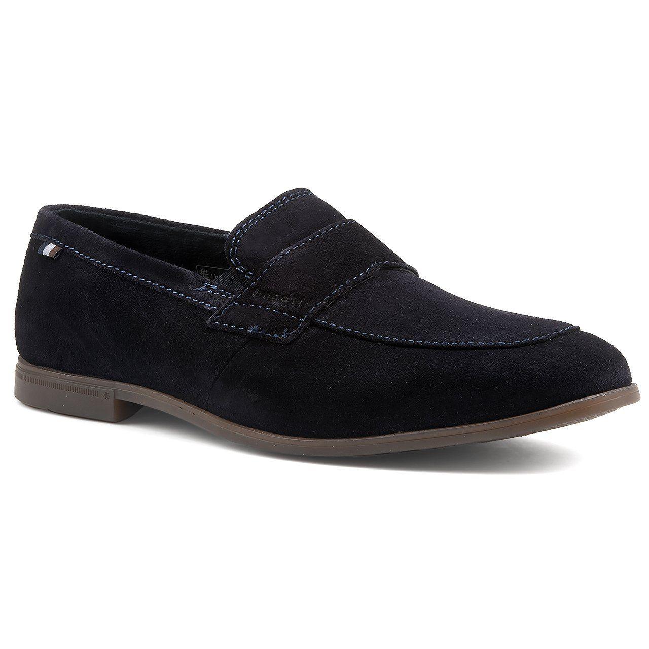 Les détails de ces mocassins sont soigneusement conçus pour répondre aux attentes des hommes qui apprécient le style et le confort. La couleur bleu marine est une touche de sophistication et de distinction, parfaitement adaptée aux occasions formelles. Le mocassin est équipé d'une bande de cuir velours qui traverse le dessus, permettant un ajustement facile et une fermeture sécurisée. Un petit logo de la marque Bugatti est également visible sur le côté, ajoutant une touche de personnalité.