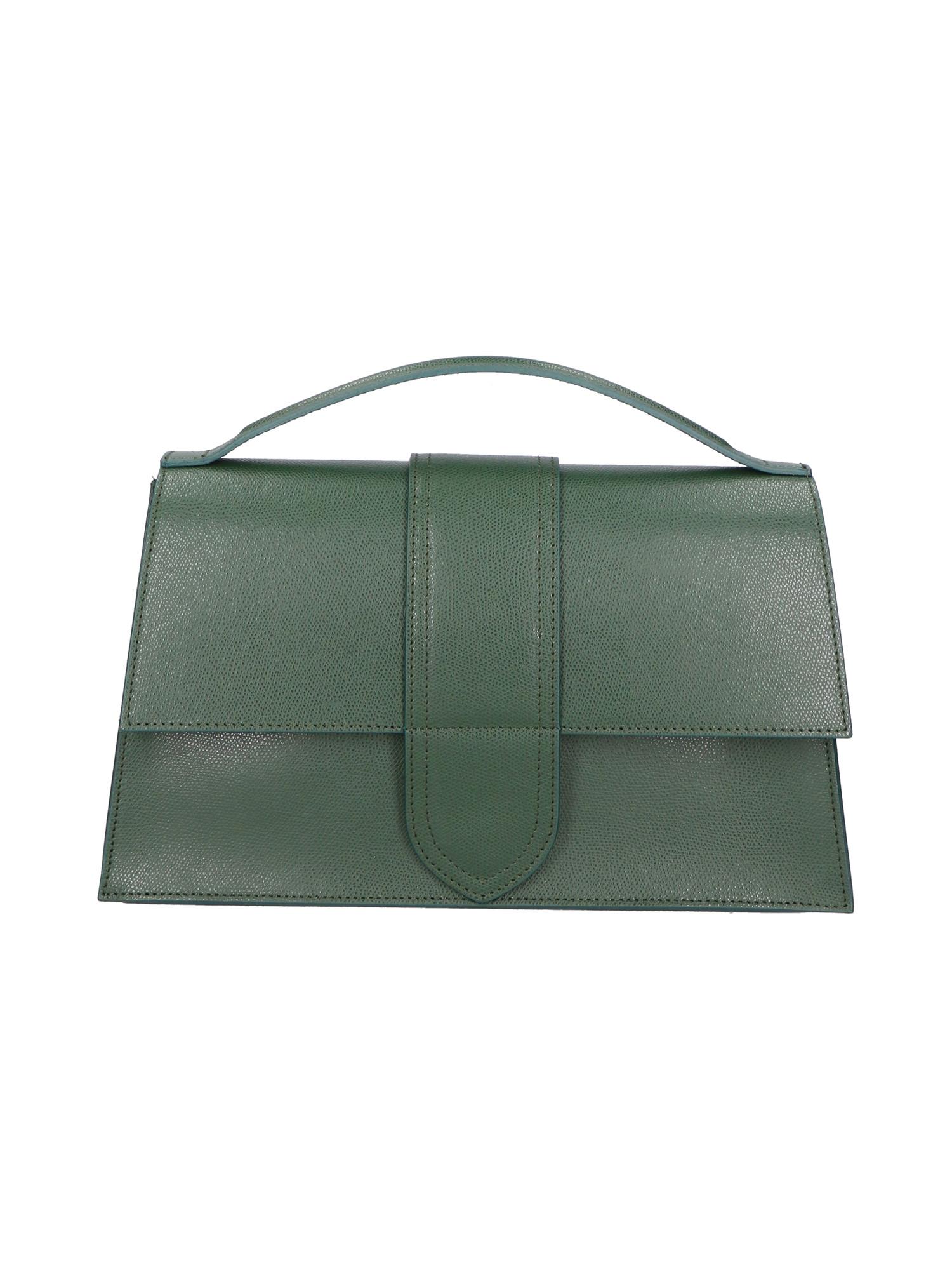 Ce sac à main présente un design classique avec une silhouette structurée, ce qui en fait un accessoire polyvalent pour diverses occasions. Le sac est équipé d'une poignée supérieure pour un transport facile et d'une fermeture à rabat avec un détail de sangle décoratif. Ce sac pour femme est fabriqué en cuir grainé à la main avec un seul compartiment. Il est livré avec une bandoulière amovible. C'est un produit artisanal italien en cuir véritable.
