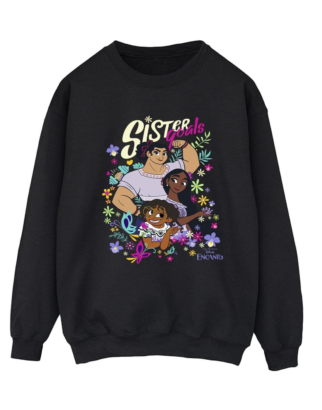 Ce sweatshirt présente un imprimé graphique vibrant inspiré du film Encanto de Disney, mettant en scène le thème «Sister Goals» avec des personnages appréciés. Il est conçu pour le confort et le style, ce qui en fait un ajout polyvalent à toute garde-robe décontractée.